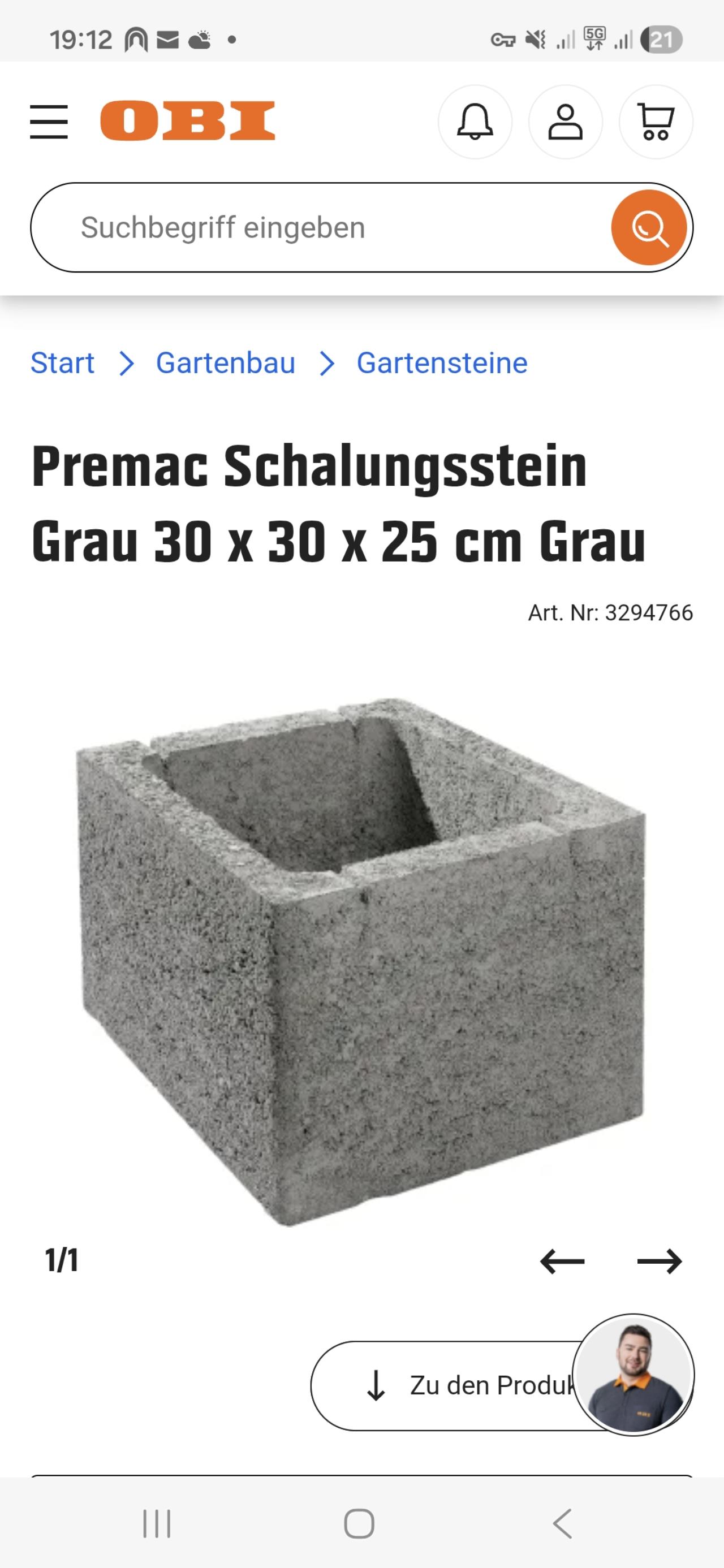 Darauf dann 2 stk 30x30x25cm schalsteine natürlich alles mit betonstahl.