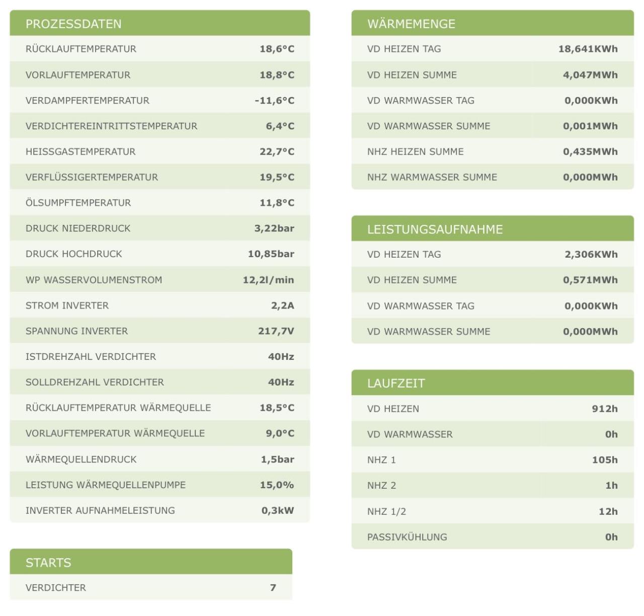 Man hört wie der Kompressor startet und im ISG werden die folgenden Werte angezeigt.