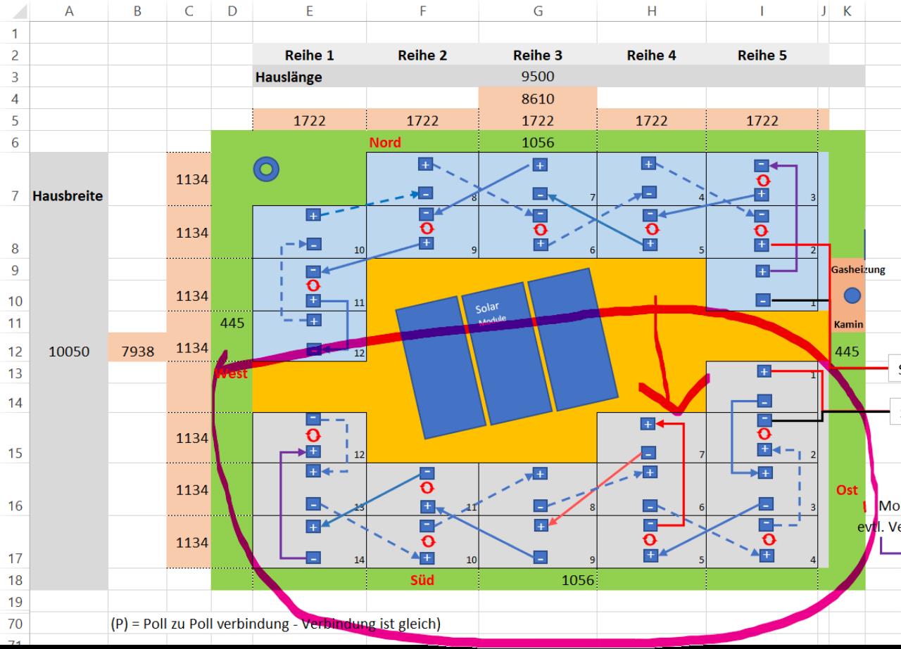 Guten Abend allerseits, Kann ein geschultes Auge gschwind mal drüberschauen? Ich bin mir bezüglich Induktionsschleifenbildung bzw. Kabellänge nicht 100% sicher, vor allem am Hauptdach. Was wäre hier eventuell die bessere Lösung? Vielen Dank! |