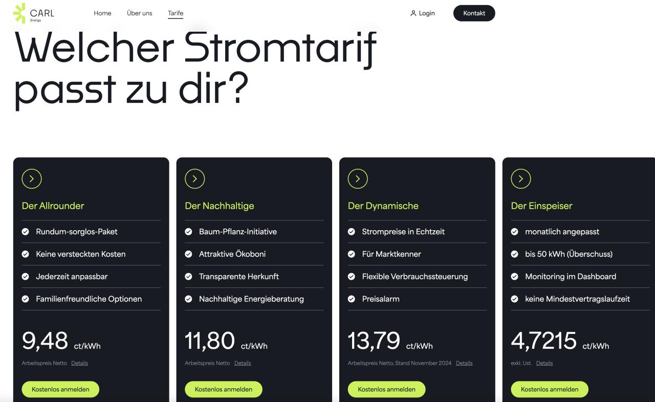 Wurde der hier schon diskutiert? https://www.carlenergy.com/tarife Ich bleibe ja noch bei meinem EVU zwecks altem Einspeiser, denn ich werde jetzt mehr und mehr sowieso wieder über die PV ziehen und fast nichts mehr aus dem Netz (derzeit nur 2-3 kWh am Tag) - aber bei 16,68 Cent je kWh (inkl. USt.) statt 11,37 Cent je kWh inkl. USt. - das ist ja schon nicht nichts. |