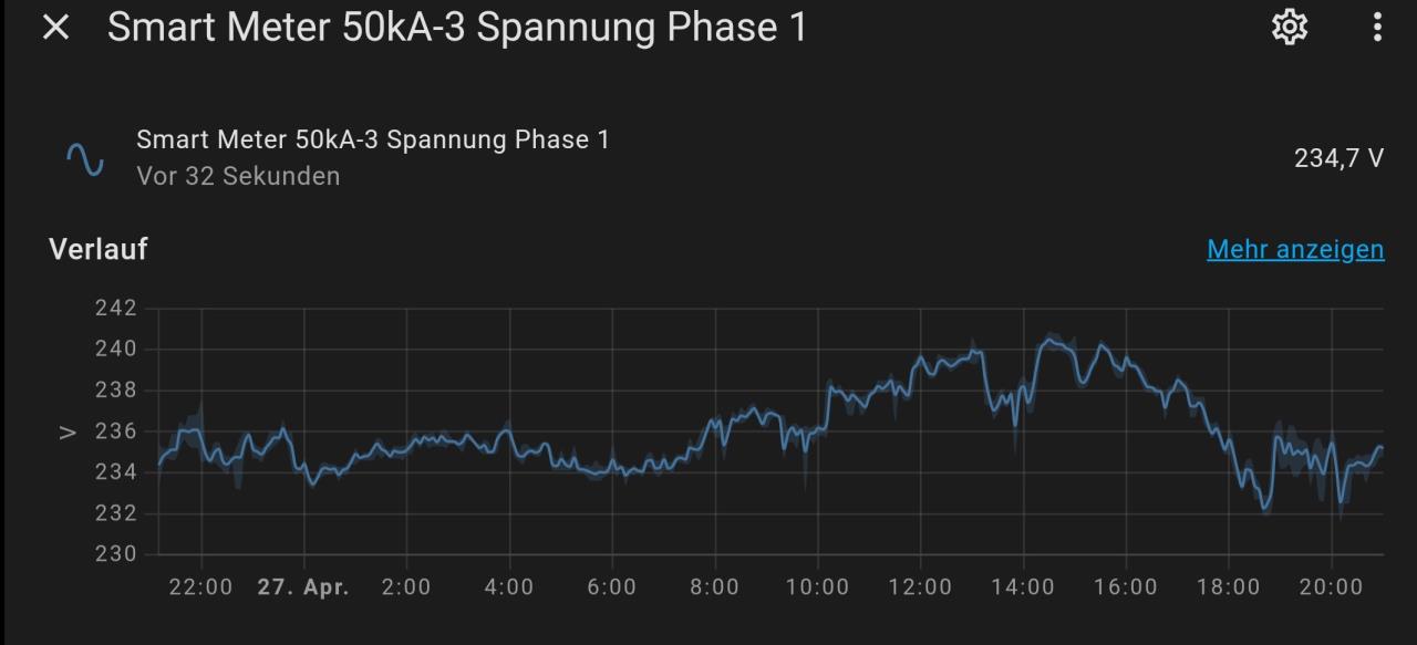 Heute war phase 3 Grenzwertig bei uns. Voriges jahr hatten wir noch 5 volt weniger auf phase 2 als rekord. Man sieht die ganzen pv anlagen pushen alles hoch. Das ist wr netze in nö. Bei uns erlaubens recht viel Anschlussleistung