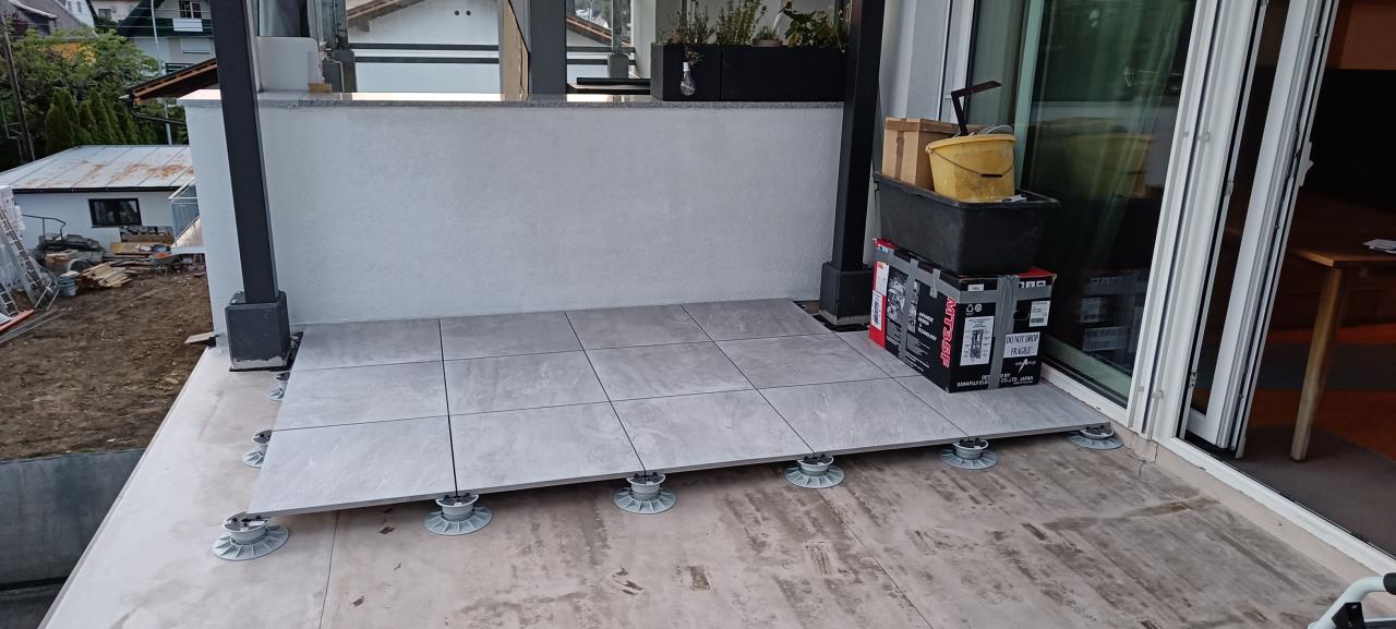 Ich habe vor drei Jahren unsere Dachterrasse neu gemacht und mich auch für Feinsteinzeugplatten auf Stelzlagern entschieden. Habe allerdings das DPS System genommen und alles gebraucht auf willhaben für seeehr wenig Geld kaufen können. Die Challenge war natürlich die Verlegung auf dem doppelt schiefen Flachdach (Wasserablauf). Kann eigentlich so ziemlich alles bestätigen, was tomsl geschrieben hat: Abbrechende (bzw. abgescherte) Distanzen, zugeschnittene Fußplatten an den Rändern usw. Generell "verschieben" sich unsere Platten mit der Zeit schon, d.h. die Fugen sind unterschiedlich groß - stört mich schon etwas. Allerdings haben wir ja zum Glasgeländer vorne hin keinerlei Einspannung oder Begrenzung, was das sicher begünstigt. Ab und an rücke ich einzelne Platten halt wieder zwei Millimeter zurecht. Letztere habe ich übrigens per Wasserstrahlschneider zugeschnitten, so passen sie perfekt - man muss halt vorher genau ausmessen und Vektorgrafiken für den Wasserstrahlschneider erstellen. Ich habe auch allein verlegt, war in zwei Tagen gemütlich erledigt. |