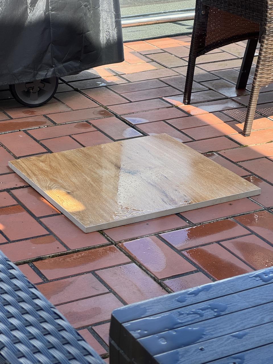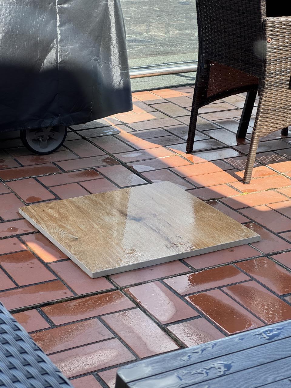 Danke für die Zusatzinfos. Habt Ihr Erfahrungen/Empfehlungen zu Steinzeug im Allgemeinen? Ich habe zum Vergleich mal ein Foto direkt nach Regen aufgenommen und dann 4 weitere, jeweils im Abstand von lediglich 10 Minuten. Die rote Fliese (derzeitiger/alter Bodenbelag) trocknet weitaus schneller als die neue/geplante. Ich weiß nicht, ob die alte das Wasser besser aufnimmt...es kam jedoch nie zu gesprungenen Platten aufgrund von Frost, von dem her kein Problem. Die rote Fliese ist 50x50x4cm und oberflächlich in 8 rote Elemente unterteilt. Die neue 60x60x2. |
