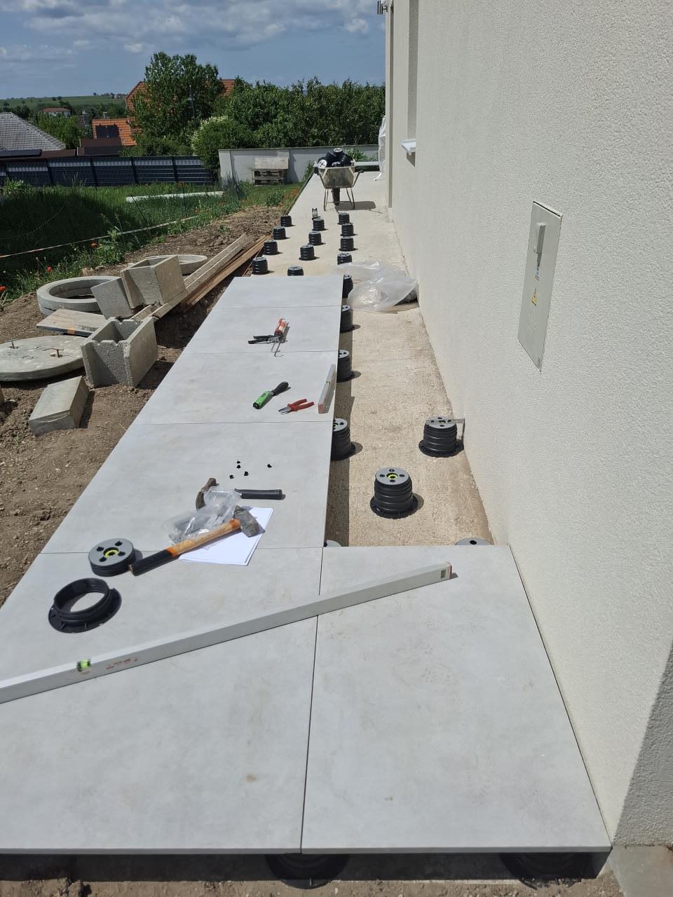 Wir haben auch begonnen - die ersten Platten liegen. Wir haben über 70qm. Also noch einiges an Arbeit vor uns, bis jetzt sind wir mit den Stelzlagern und dem wirklich tollen Kundenservice von ceratrends sehr zufrieden, mit den Platten bzw. der Lieferung eher nicht. 35 von 100 können wir aufgrund von Beschädigungen nicht verwenden. Ein paar Bilder: |