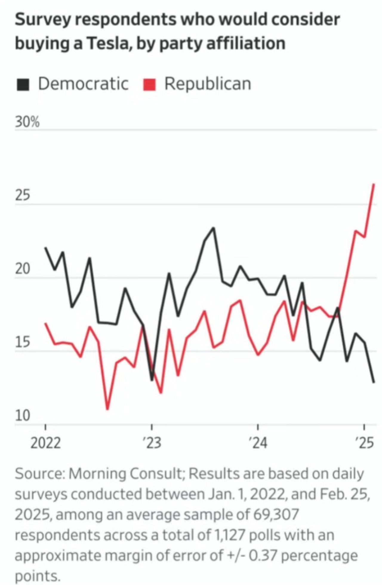 Wenn eine Marke in derart gespaltenen Zeiten und bei einer de facto Verteilung von 50/50 der Wähler als politisch wahrgenommen wird, schadet das der Marke immer, weil man mit einem Schlag bei einem Teil des Marktes einen irreperablen Schaden erleidet. Die Problematik, dass die Republikaner nicht besonders E-Auto-affin sind, kommt hier noch dazu. Wenn jetzt ein paar Republikaner E-Autos kaufen, wird das kurzfristig vielleicht Ausfälle kompensieren, aber langfristig ist die Marke beschädigt. Dies gilt vor allem auch für die europäischen Märkte, da hat Tesla sein Image drastisch eingebüßt. Das mag im Gesamtbild jetzt auch nicht das ganz große Problem sein, aber am Ende ist das eine für ein Unternehmen dramatische Entwicklung, weil mit dem Arsch eingerissen wird, was mühsam über Jahre erarbeitet wurde. Heute zum Thema im Standard: https://www.derstandard.at/story/3000000261193/tesla-hat-einen-verhaltensauffaelligen-chef-hat-der-einstige-pionier-auch-den-anschluss-verloren |