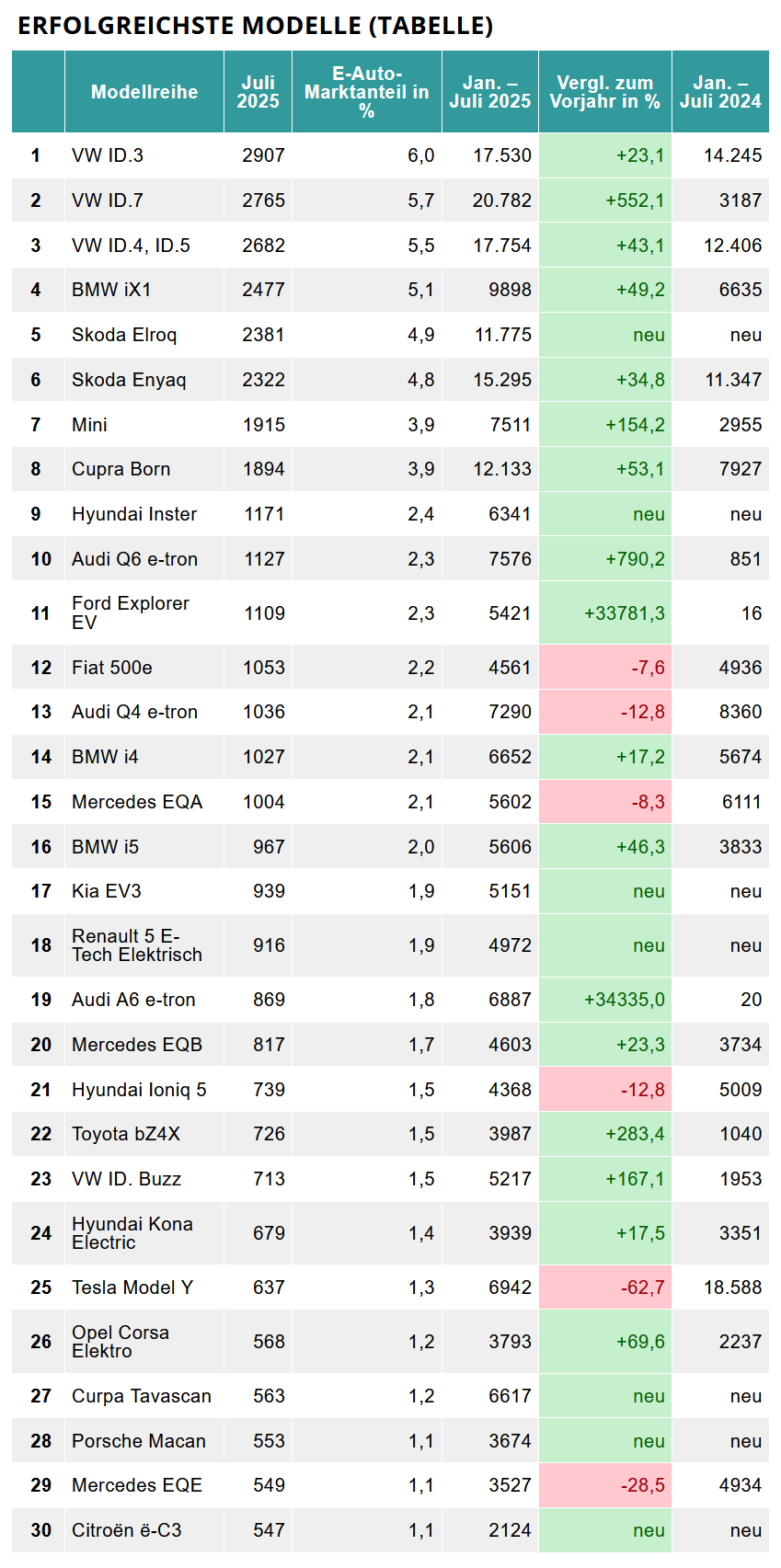 Hier gibt es aktuelle Zulassungszahlen für Juli 2025 aus Deutschland: Quelle: https://www.autozeitung.de/zulassungszahlen-elektroautos-205703.html Und Österreich: Quelle: https://bsky.app/profile/chrigru.bsky.social/post/3lw4tauu6ks2e Abgerechnet wird zum Schluss. Gut ausschauen tut es aber aktuell echt nicht (für Tesla). |