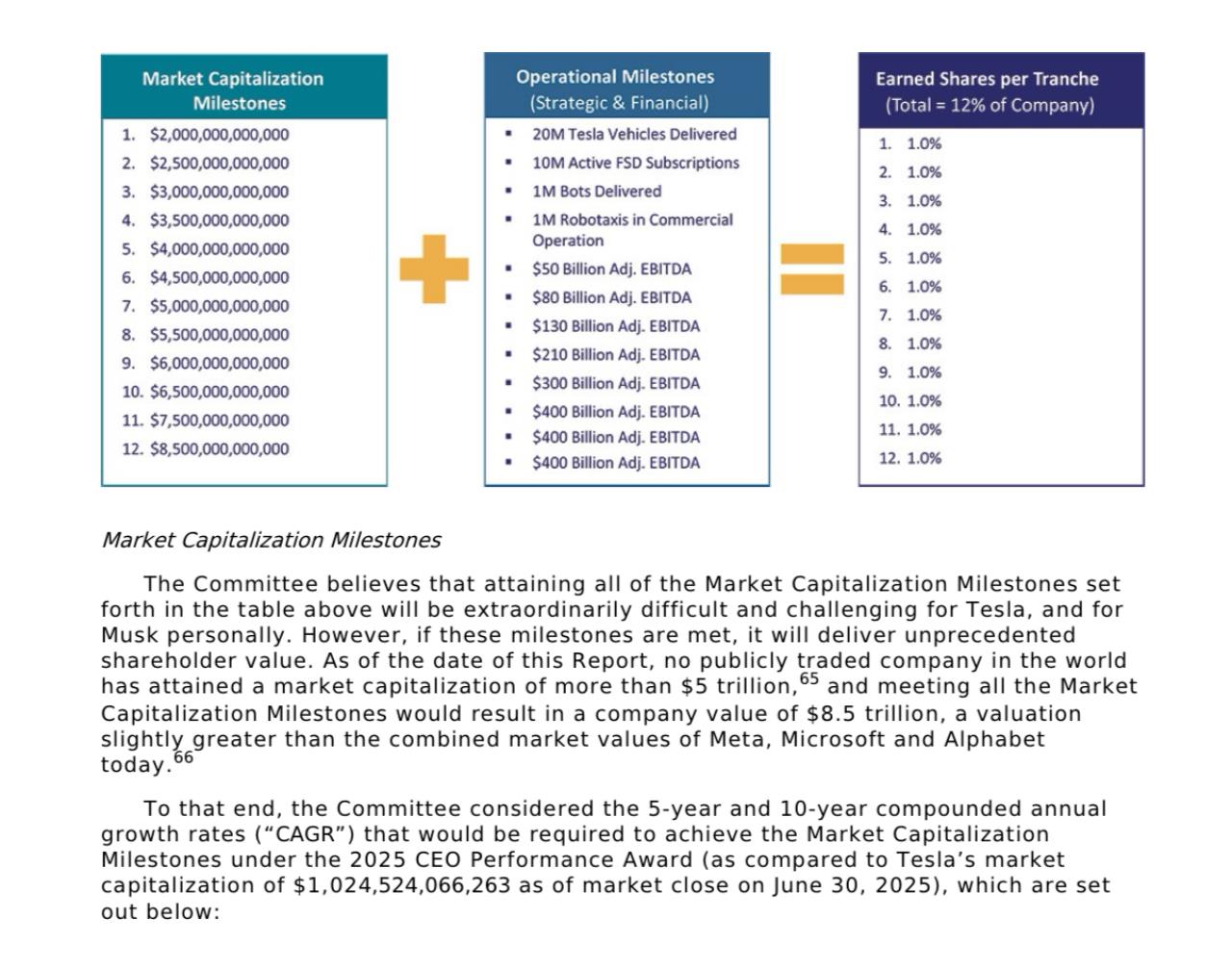 Hast dir die Hintergründe angesehen, was dahinter steckt? Der ORF Artikel verrät ja keine Details. Entgegen der hier oft behaupteten oder vermuteten Tatsache, dass Musk wohl bald Geschichte ist, wird offensichtlich darum gerungen Musk noch stärker an Tesla zu binden. Was bedeutet das Paket also konkret? (Quelle der beiden Grafiken: https://ir.tesla.com/_flysystem/s3/sec/000110465925087598/tm252289-4_pre14a-gen.pdf ) Es handelt sich um einen mehrjägriges Vergütungsschema, welches es Musk ermöglichen würde im Bestcase seine Unternehmensanteile auf ca. 29% zu erweitern. Damit hätte er dann erhebliche Stimmrechte (>25%) und wäre nicht nur der reichste Mann der Welt. Übrigens, ist Musk nicht erfolgreich, dann gibt es keine Vergütung/kein Geld, also 0cent. Wer von euch würde so einen Deal eingehen, im Wissen, dass das gesamte AI Konstrukt (FSD, Optimus...) nur ein Blendwerk ist? |