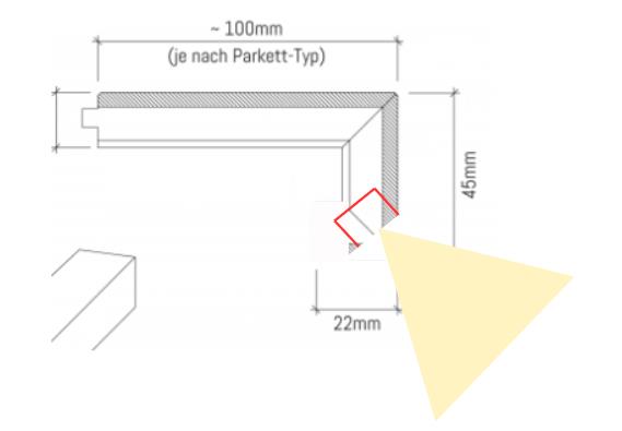 Danke für die Skizze. Das macht Sinn. Ja, die LEDs gibt es in vielen breiten aber damit sie auch mit Steckern in die Alu Profile passen müssen die Profile innen schon 10mm haben und dann haben sie außen 17mm. Das heißt inklusive Aluprofil und Anleimung komme ich bei deiner Variante auf ca. 31mm (17mm plus 14mm Parkettdicke) Überhang. Hättest du da nicht Angst dass das Parkett durchbricht? |