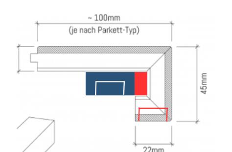Wird das nicht zu viel Überhang? Das wäre ja vermutlich die 22mm der Anleimung plus nochmal ca. 20mm (Option A). Oder meinst du in die Anleimung reinfräsen und den Hohlraum zwischen Trittstufe und Anleimung mit einer Holzleiste auffüllen für die Stabilität (Option B)? Ich habe mal eine Skizze erstellt mit den beiden Optionen die ich sehe. Dabei ist das blaue Rechteck die Option A und das rote Rechteck mit der roten LED Leiste Option B. Ich rede mal mit ihm. Aber vermutlich sind die Arbeitskosten genauso hoch wie wenn man das Profil fertig kauft?! Danke |