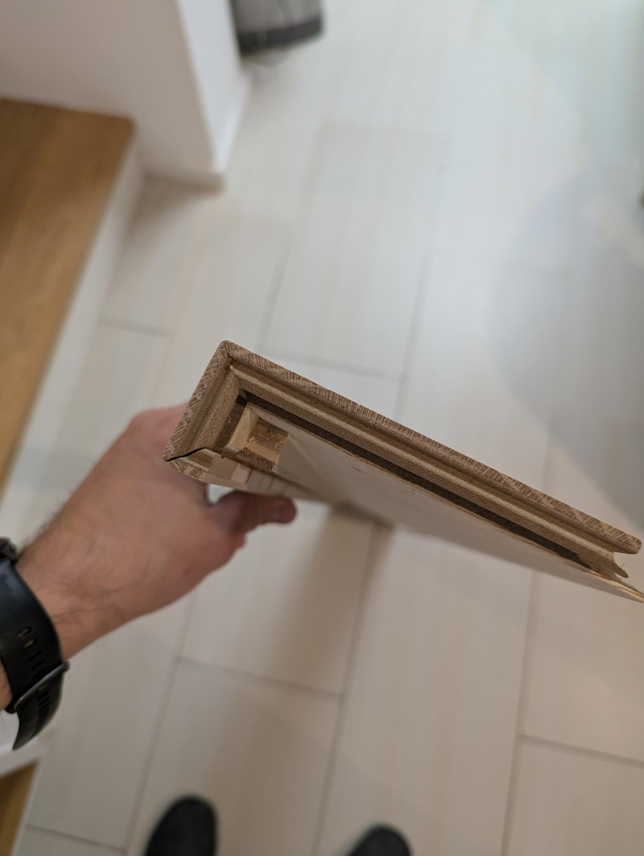 Hallo, ja sorry mit dem Umzug ist das untergegangen. Hier sind die Bilder. Am Ende ging die Anschrägung dann doch nicht, aber das macht nichts. Sieht mega aus finde ich. Der Parkett kommt vom Inku und die haben auch in Lohnfertigung die Stufen machen lassen. Ich habe mir das schmalste Aluprofil das ich für 8mm Streifen finden konnte (10x10mm Außenmaß) genommen und sie haben ein 4Kant so geschnitten, dass bis Unterkante ca. 12mm Platz sind. Beim Setzen hat der Verleger dann auch mindestens die 12mm zum Spiegel gelassen, so hat die Alu Leiste super gepasst. Unten Fotos von einer der 3 Stiegen 😅 |