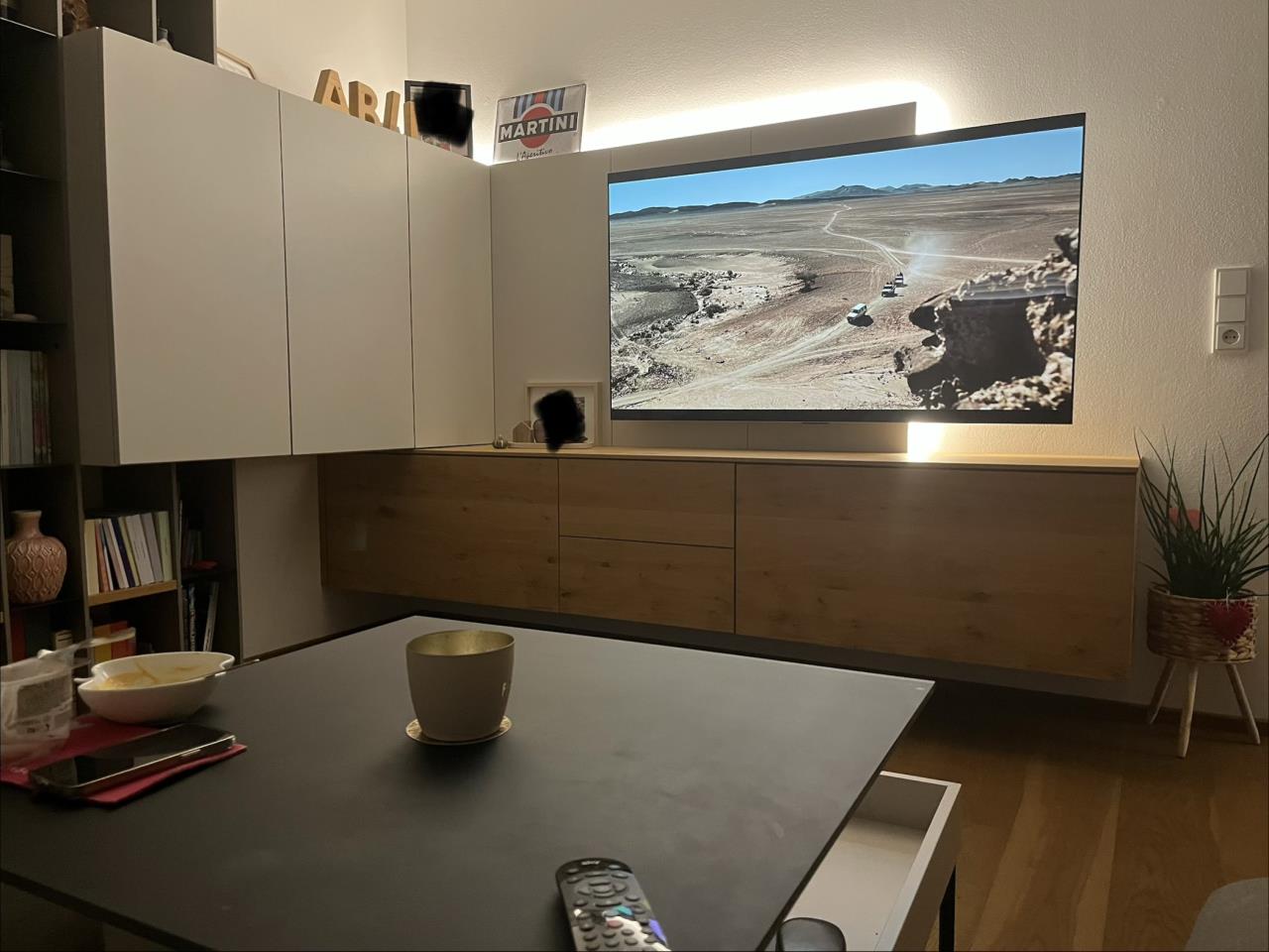 Hab auch selbige Lösung wie MissT. Würde nichts im hinteren Bereich des TVs platzieren. Edle Teile schauen am besten aus wenn sie so flach wie möglich an der Wand sitzen. Unser LG Gallery sieht dadurch wirklich perfekt aus, ist exterm schmal und die Halterung ist dementsprechend konstruiert. Selbst eingestemmt wird dir früher oder später irgendwas abgehen oder das Kabelzeugs dir Probleme machen. Drunter ein Lowboard wo dahinter/darin dann das ganze Klimmbimm steckt. Die meisten TVs haben eh das ganze schon ausgelagert und nur das Display ist mehr oder weniger an der Wand und die Box muss dann irgendwohin. Am Lowboard seht noch ein Vinylplayer und seitlich machen dann 2 fette Aktivboxen die Musik bzw. die richtige TV Klangatmosphäre. 😁 Kann mir auch schwer vorstellen wenn darunter wirklich gar nix stehen würd. Leider kein besseres Foto. ![]() |