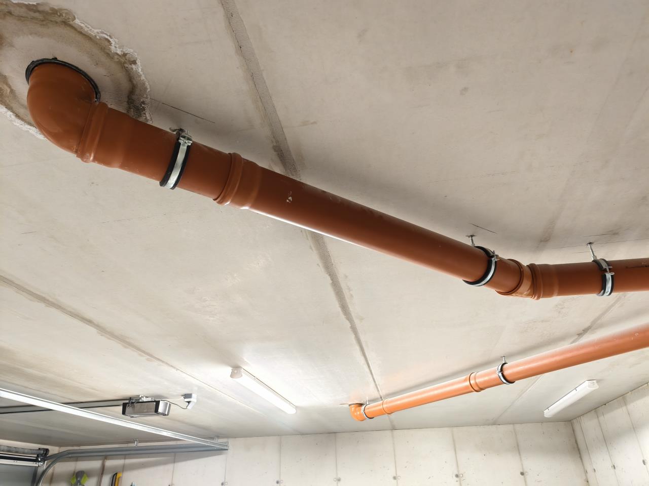Wäre es Kondensat, müsste es an allen Rohren auftreten. Für Kondensat erscheint mir das Schadensbild zu ausgeprägt.   Um festzustellen, ob wo es undicht ist, könnte man die roten Rohre entfernen und bei Niederschlag prüfen, ob das Wasser aus dem Stutzen läuft oder auch zwischen Beton und Stutzen. Im letzten Fall wäre es ein Hinweis auf eine Undichtigkeit.  |