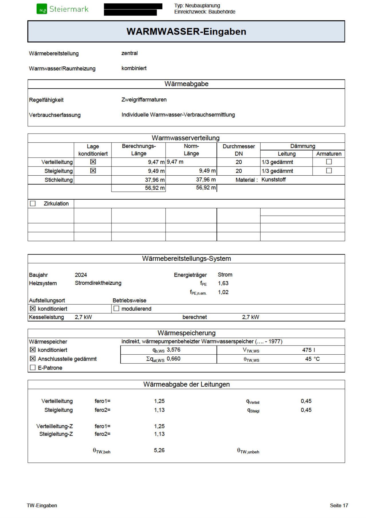 Bei uns ist es ähnlich. Holzständerhaus mit 148qm, Bj 2007, voll unterkellert, FBH, Nat -12,8. Aus 2007 war auch ein Energieausweis vorhanden. Heizlast 5,7 kw. Im Zuge der Förderung haben wir 2024 die Gasheizung gegen eine Lwwp getauscht. 3 Angebote, 3 verschiedene Grössen von WP WP [Wärmepumpe]. Da bei uns in Vbg. Vaillant vom Kundendienst her stark aufgestellt ist, wollten wir eine Vaillant. Angeboten wurde von der 35/6 bis zur 75/6. Letztendlich wurde es eine 55/6 und wir sind voll zufrieden. Den Kundendienst haben wir jetzt 2x gebraucht, einmal Platine Hydraulikstation Totalausfall und vor 3 Wochen Kältemittelmangel. In beiden Fällen, am Wochenende, innerhalb von 4 Stunden ein Techniker vor Ort, Mangel behoben und Heizung lief wieder. Stromverbrauch finde ich gut, im Jänner waren 10 Tage mit Nachttemperaturen von -9 bis -11 Grad, am Tag von -5 bis -3 Grad. Stromverbrauch, extern gemessen, von 18 bis 21 KWh an diesen Tagen. Heizstab ist komplett deaktiviert, bis -11 Grad gehts bei uns ohne. Anlage: 55/6, Hydraulikmodul, Vaillant ZWT, 45 lt. Puffer im Rücklauf, Warmwasserspeicher, Wunschtemperatur 22 Grad, Heizkurve 0.25