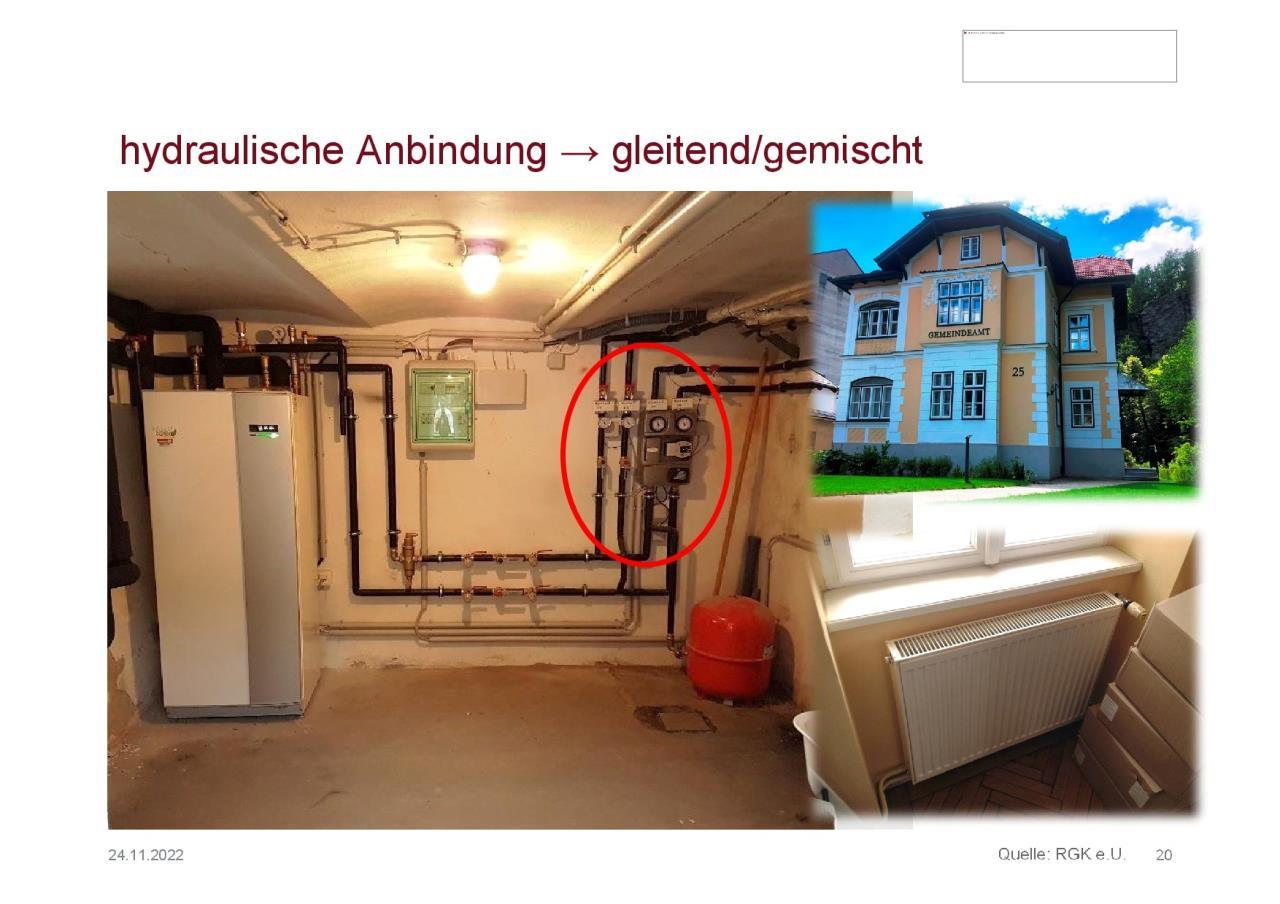 Also im Endeffekt: Puffer raus, Heizkreispumpe für Heizkörper raus. Deine HK geben die max. VL Temp. vor, und diese wird über den bestehenden Mischer und Heizkreispumpe für den FBH FBH [Fußbodenheizung] runtergemischt (bestehend). Funktioniert genau so wie in dem gezeigten denkmalgeschützten Gemeindeamt. 😉 |