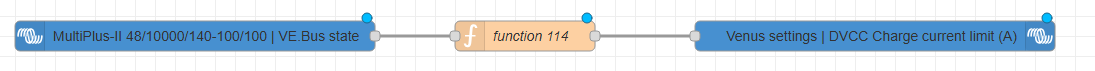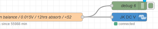 Ich verwende die ganzen Drag&Drop-Nodes im NR nicht, aber mit einem Funktionsnode ist sowas ein etwas erweiterter Einzeiler 😉 Lässt sich auch mit ChatGPT super umsetzen wenn du mit der Syntax nicht so gut drauf bist Also du möchtest: WENN Status == 9 CCL = 200A SONST CCL = 0A und jedesmal wenn sich daran was ändert soll er entsprechend umschalten ? |