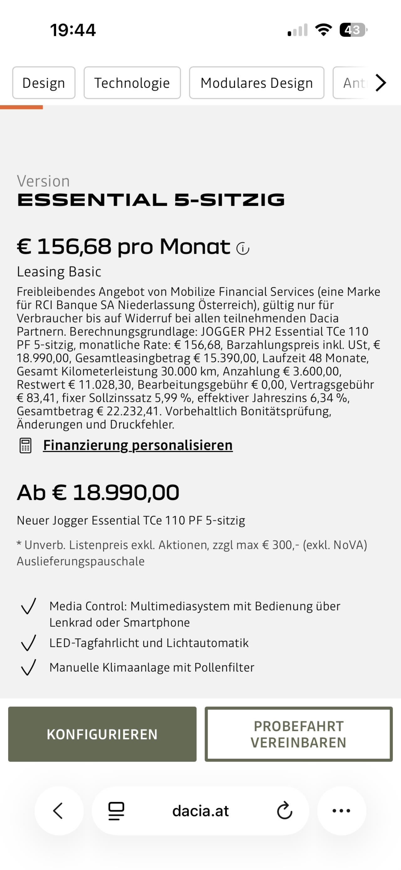 Kann ich dir gar nicht sagen (befasse mich nicht mehr mit Verbrennern), aber Dacia ist wohl das billigste Auto am Markt (was ja ok ist), aber bei diesen Vergleichen hakt es meist an der gleichwertigen Ausstattung. Auch die Berechnungsmethode "nur Anschaffungskosten" wäre mir zu wenig. |
