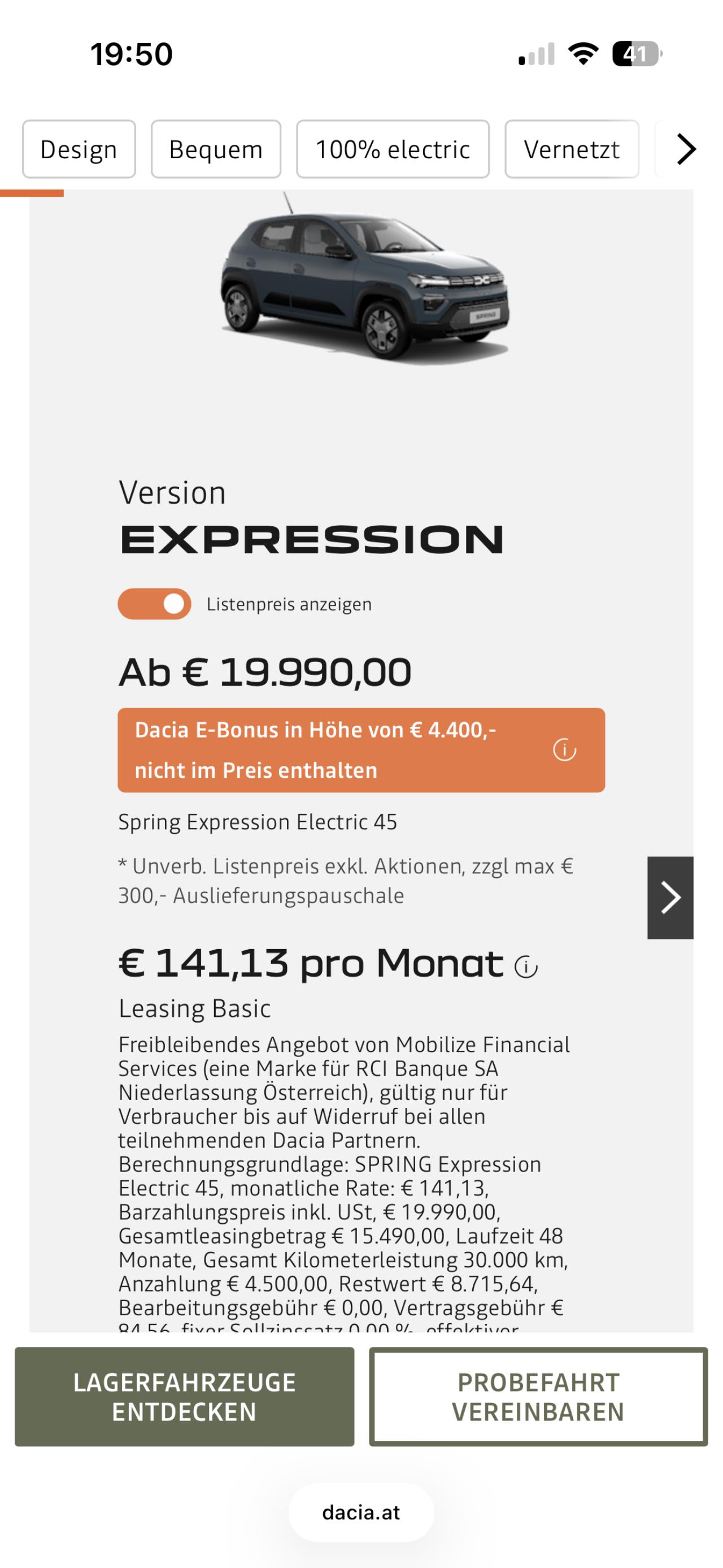 Der Dacia fängt bei 19k€ an... ![]() In der Range gibts mWn nix elektrisches neu vom Band... aber andererseits gibts keinen Elektro mit manueller Klimaanlage 😉 Kleine, günstige PKW werden immer ihr Publikum haben - derzeit sind die EV's noch zu sehr in den Kinderschuhen der Entwicklung, um im Konzert der günstigsten PKW schon die erste Geige zu spielen... oh wait 😇 ![]() Abzüglich absolut unbekanntem Dacia e-Bonus unter 15k€... tadaa |