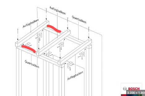 Also meiner Meinung nach sind oben und unten die rot markierten Pfetten die "gefährlichen" plätze für ein Nest.