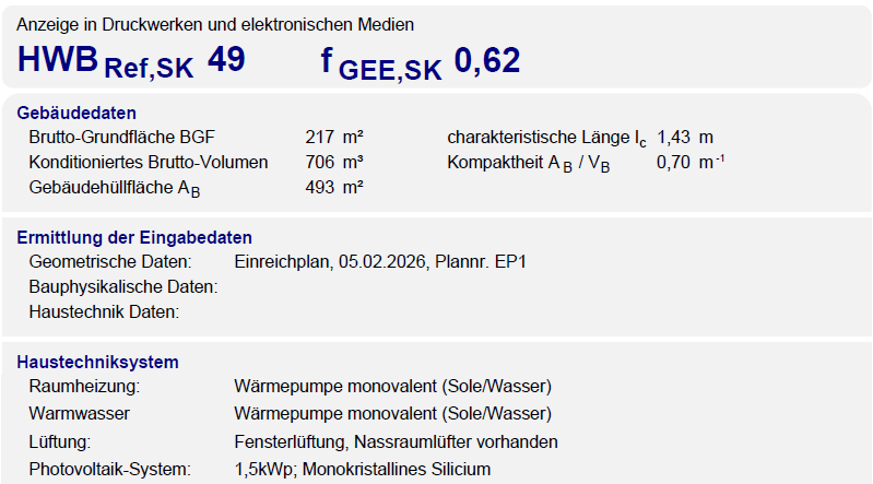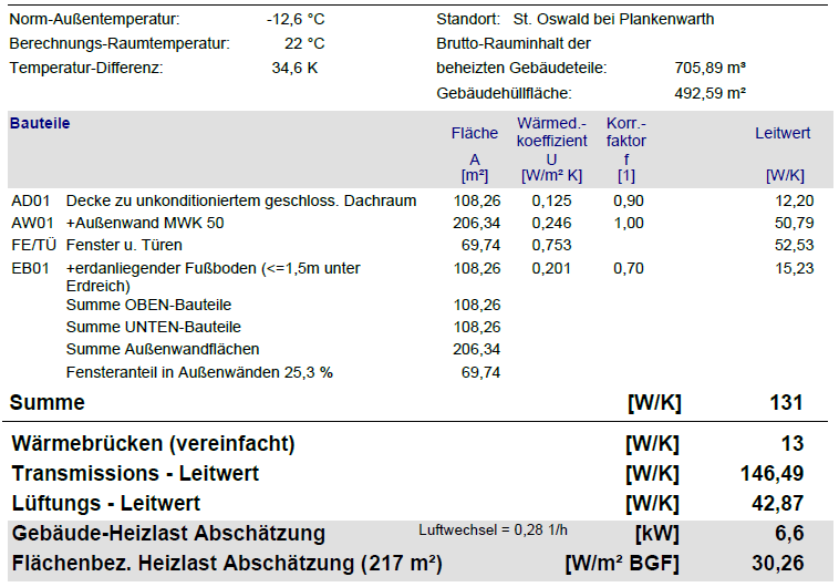 Hallo, danke schonmal für die raschen Antworten/Rückmeldungen. Richtig, die Decken im EG/OG sind aktuell mit 20 cm Stahlbeton geplant. Anbei ein paar Daten aus dem Energieausweis, ich hoffe dort sind die hilfreichen Informationen dabei: Bezüglich eurer Vorschläge, eine kleine Zusammenfassung: - Stiebel + 400 m RGK RGK [Ringgrabenkollektor] (Mix aus beiden Varianten) - kein Puffer - BKA über die gesamten 160 m² - Lüftung haben wir geplant, allerdings nur als Bedarfslüftung in den 2 Bädern. Eine Zentrallüftung wird sich budgetär nicht ausgehen. Ich hätte noch ein paar Rückfragen: - Stiebel + 400 m RGK RGK [Ringgrabenkollektor] wird von euch empfohlen, dann unbedingt in 2 Kreisen? - Energieausweis wurde "einfach mal gerechnet", wenn die reale Heizlast eher bei 7 kW liegt, ergeben sich dann Probleme mit der 6 kW WP WP [Wärmepumpe]? - Plant das jeder "Standardinstallateur" ordentlich oder muss ich dafür extra Geld in die Hand nehmen? - Warmwasser Stiebel SBB 301 WP SOL (300 l) passt? Es gibt meiner Recherche nach ja noch einen 302. Danke nochmals! LG |