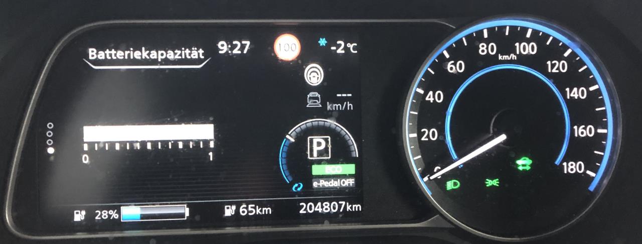 Mein Leaf ZE1 mit 205000Km zeigt volle Kapazität an, was realistisch über 85% SOH ist. |
