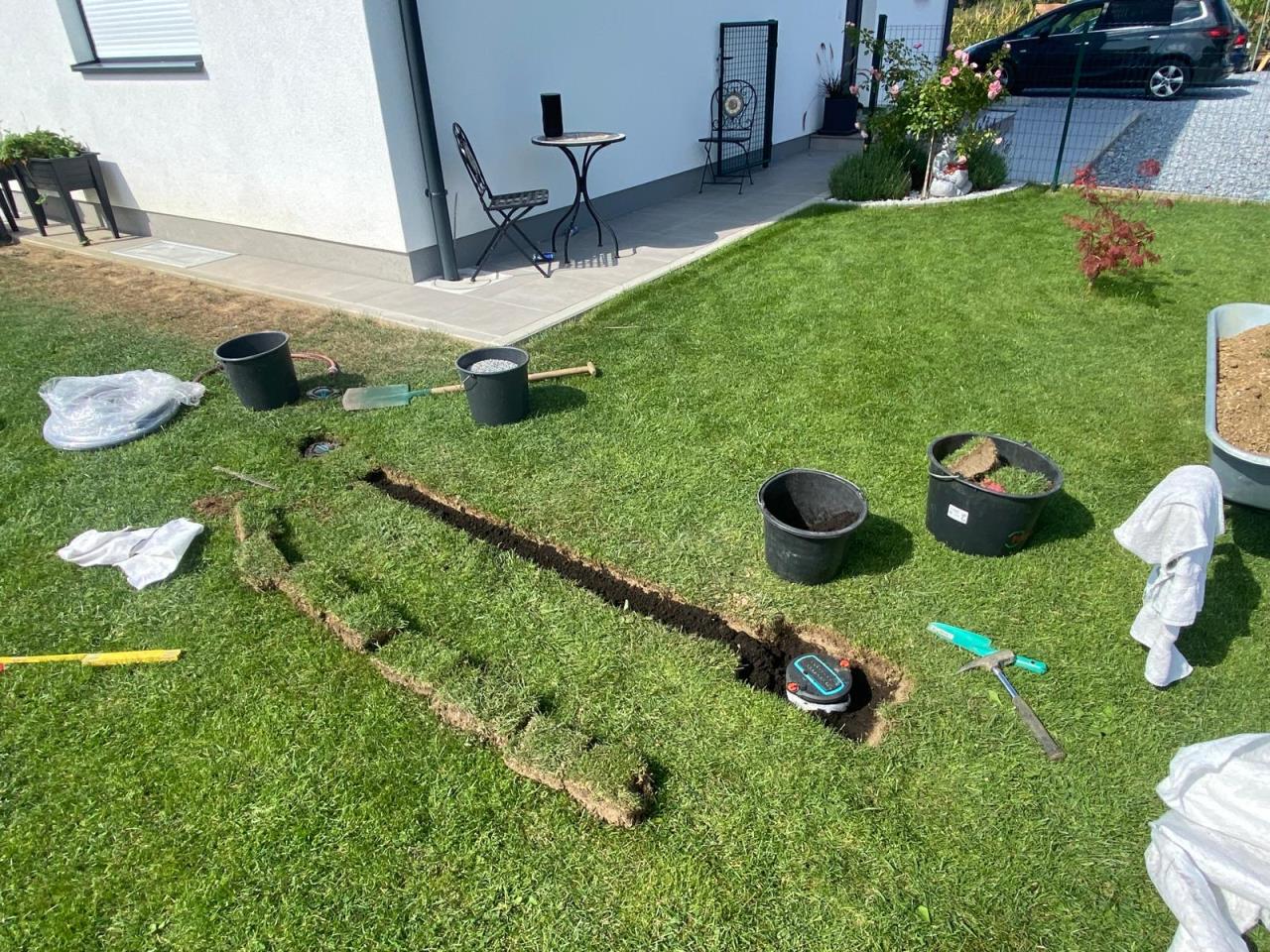 Einen von vier Bewässerungskreisen eingebaut. 2h buddeln da sehr harter Boden :((! Und die restlichen Leitungen sind noch dazu viel länger :(( |