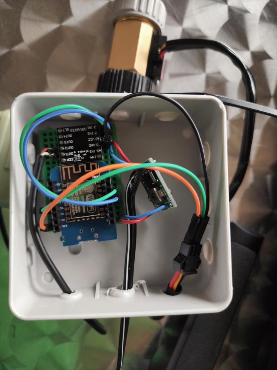 Naja gut, es war nicht alles von gestern. Das Magnetventil ist von einem vergangenen Bewässerungsprojekt, da hab ich auch schon den ESP8266 mit H-Brücke drangehabt. War also nur noch der Durchflussmesser anzubauen und die Software zu schreiben. Oder eher schreiben zu lassen, das hat ChatGPT übernommen. Gestern war ich echt schon komplett fertig nach der Arbeit und hab das Hirn schon vorher in den Feierabend geschickt 😅
