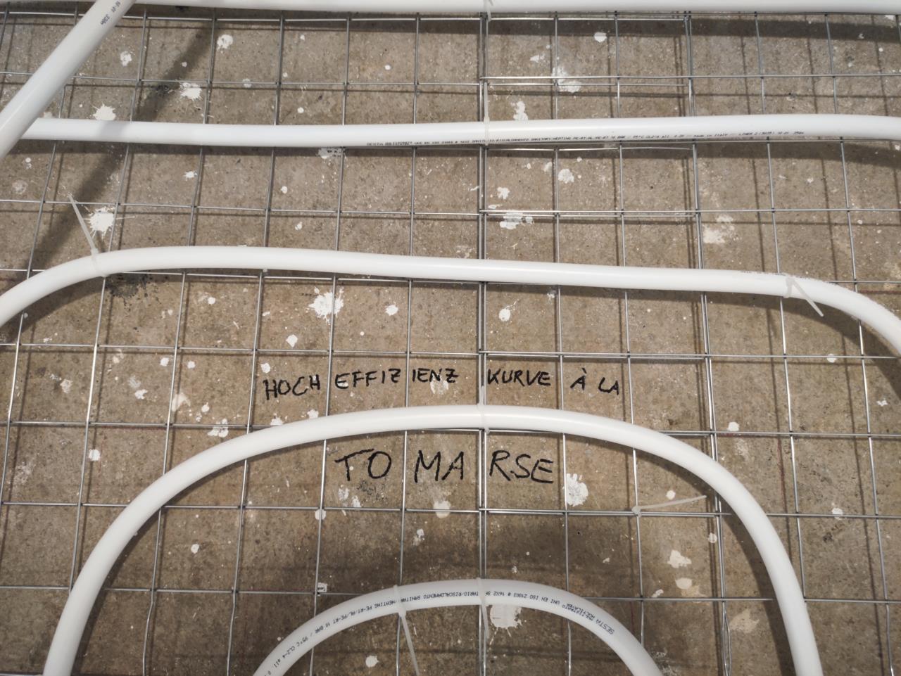 Heute war @tomarse da und hat mit mir zwei BKA BKA [Betonkernaktivierung]-Kreise verlegt. Zwei noch, dann fertig 💪