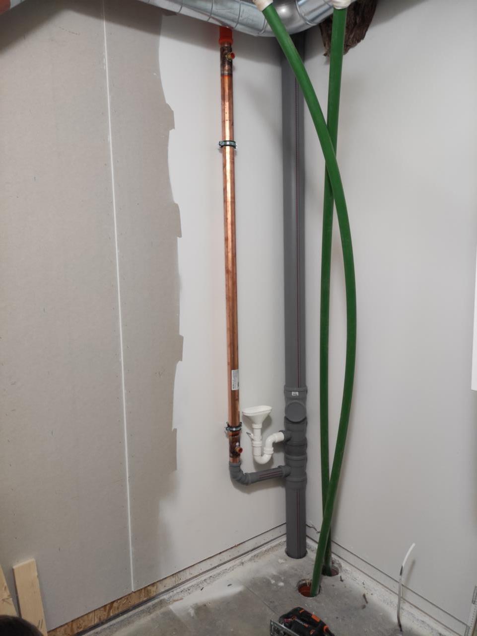 Endlich mal die Abwasserleitungen fertiggebaut 🎉 Den oberen Teil von der Fallleitung hab ich zweimal machen müssen, weil er beim ersten Mal leicht schief war. Jetzt ist dann auch der Platz für die WP WP [Wärmepumpe] (links vom Duschrohr) vorgegeben. |