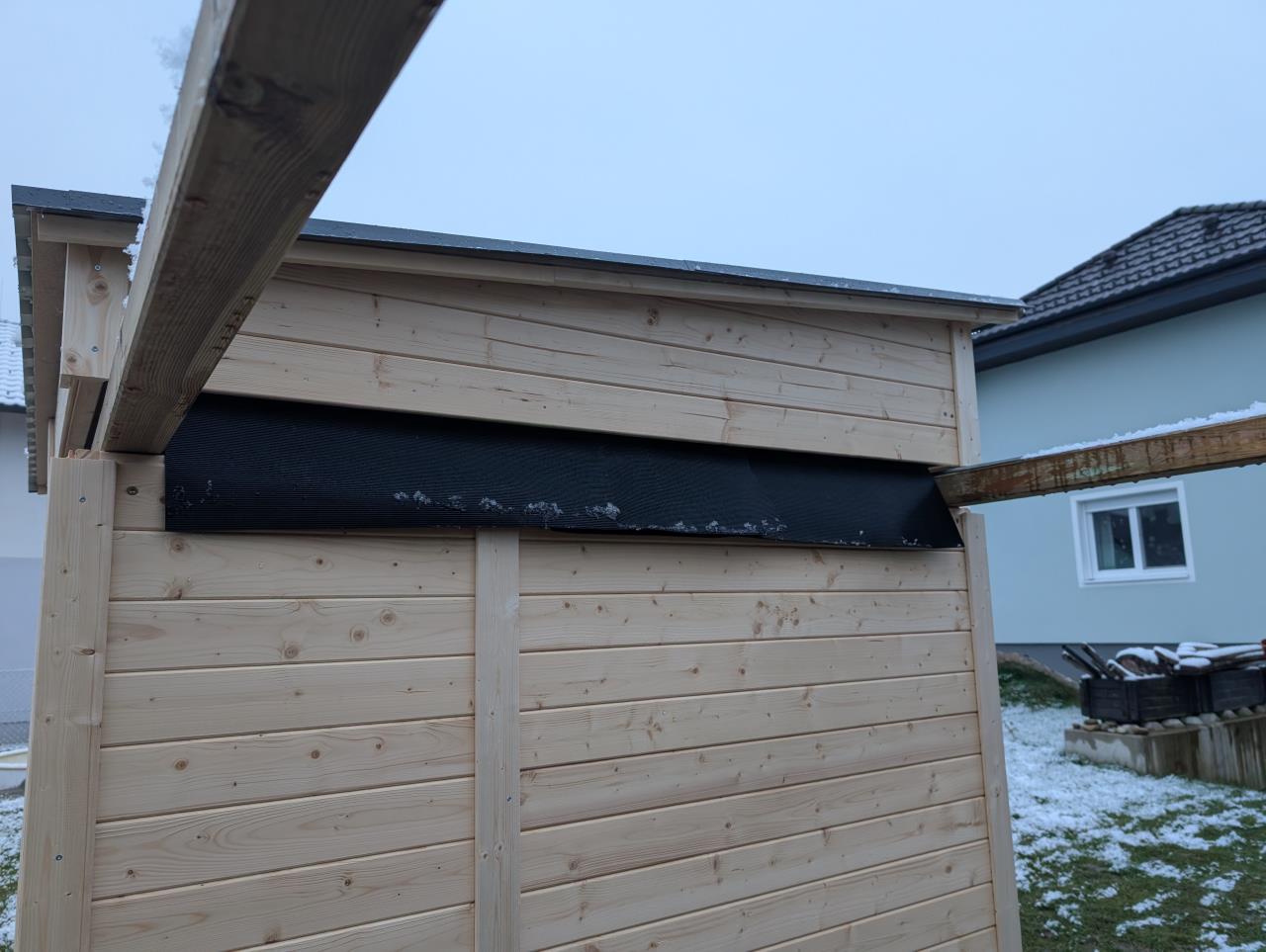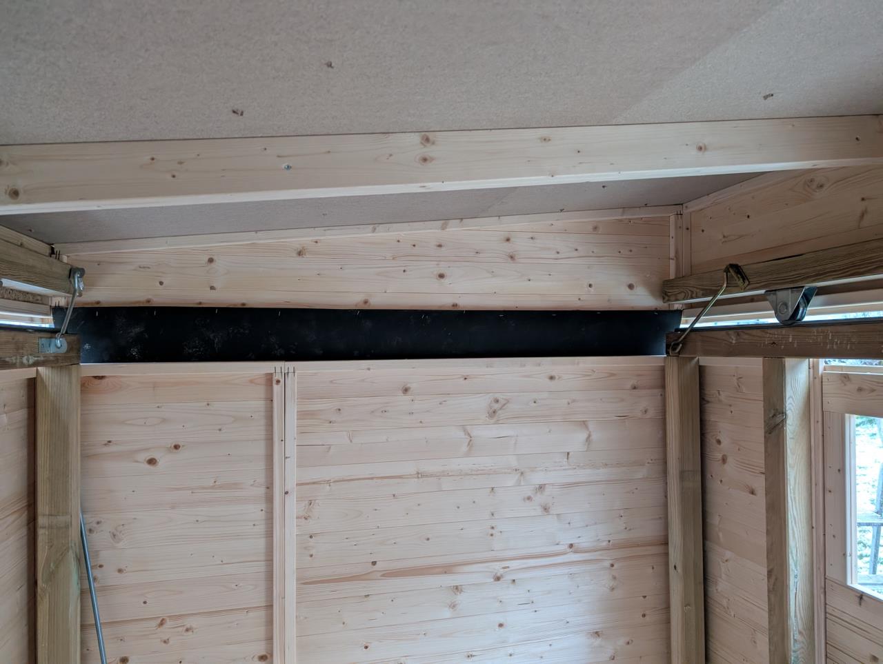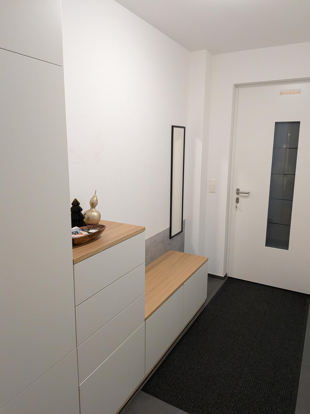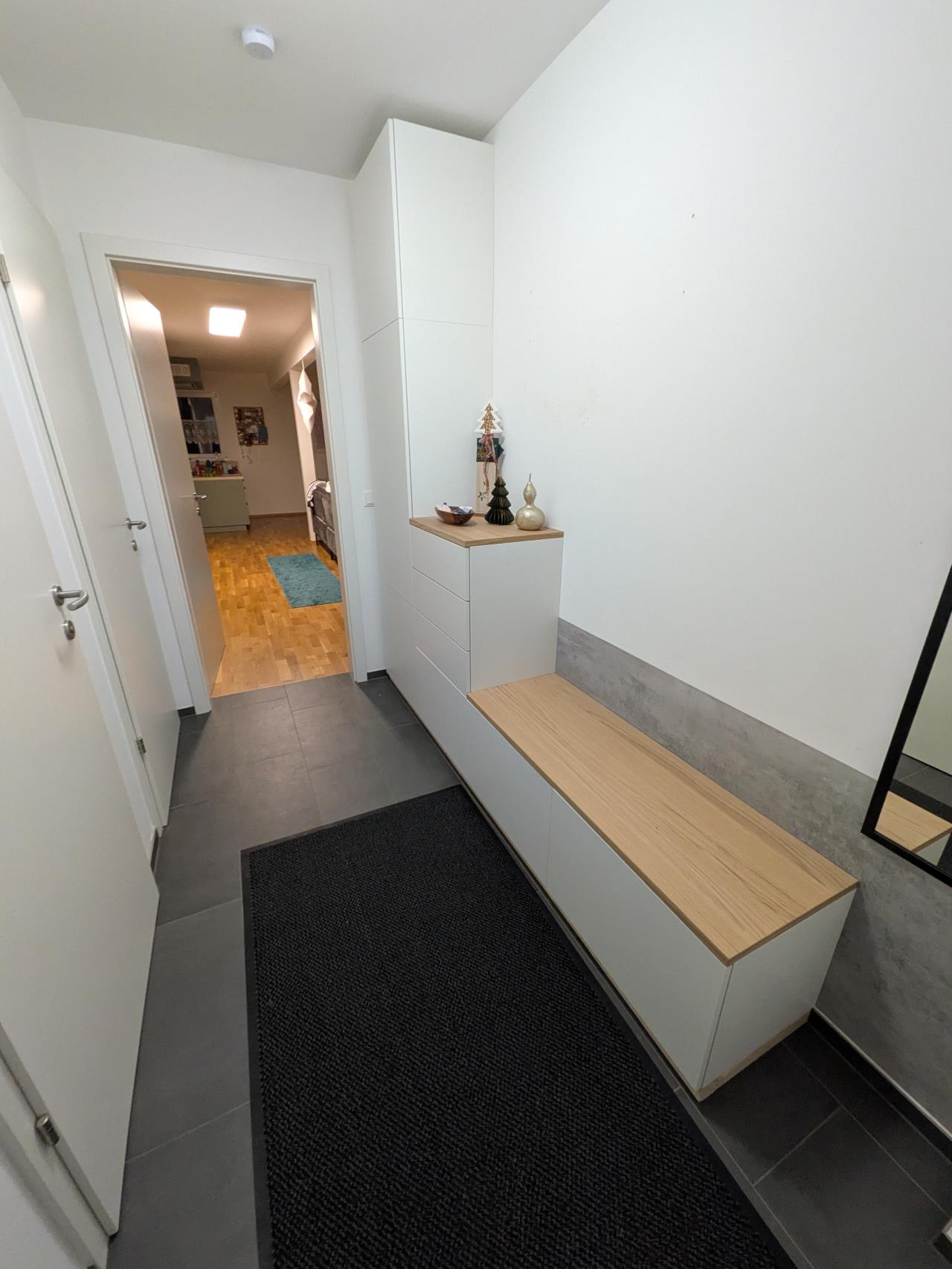 Oben kommen noch Hängeschränke hin, damit der kleine Raum ordentlich Stauraum bietet. Die Rückseite wird dann noch mit Hilzpaneelen verkleidet.