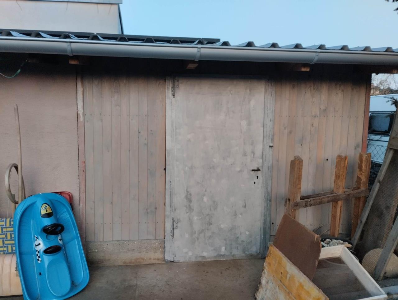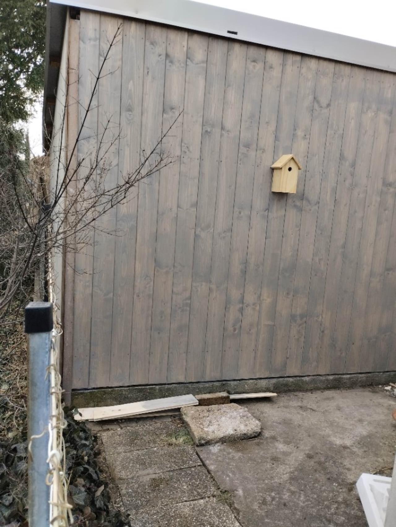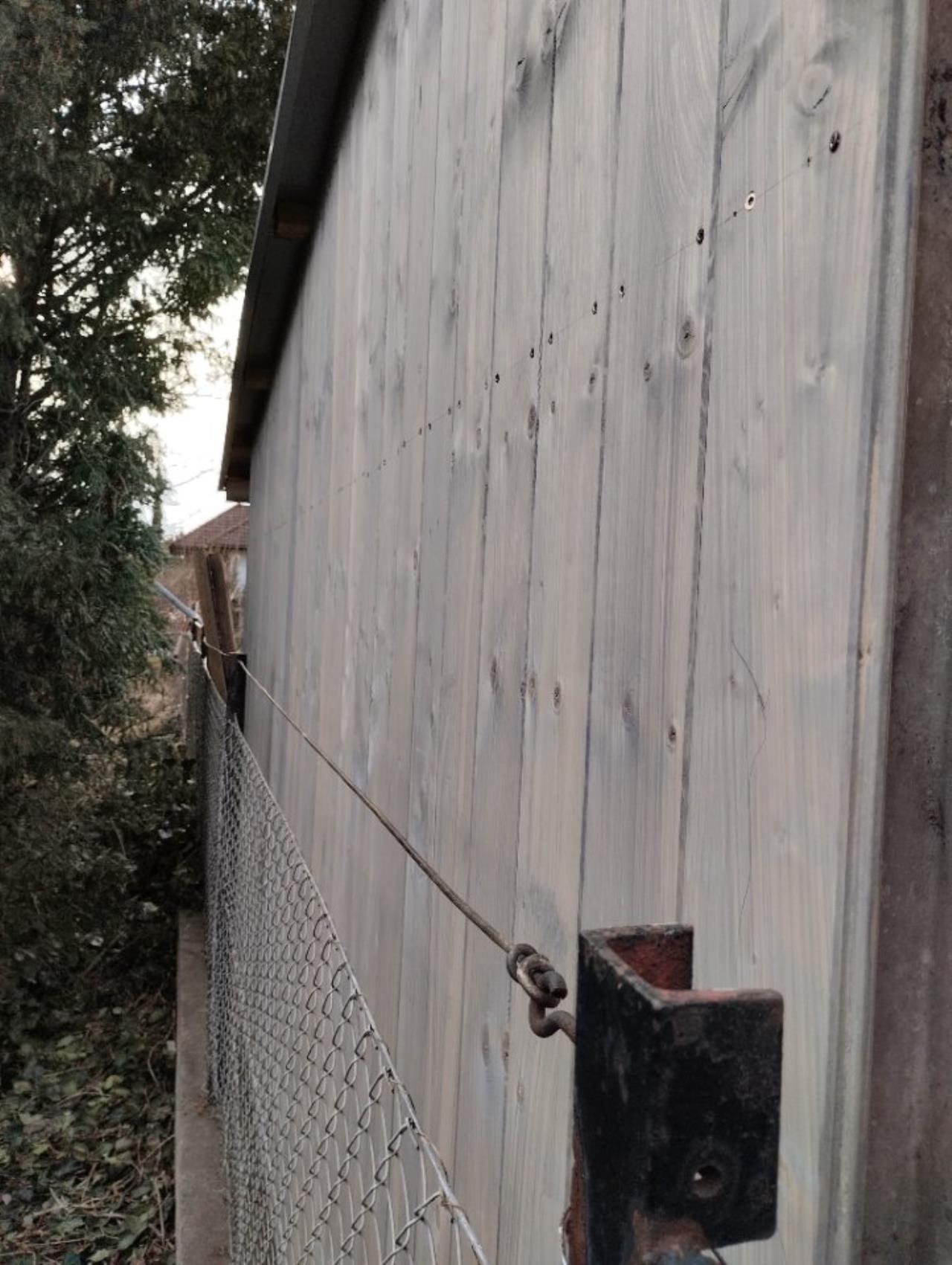Die räudige Türe in der Schuppenfront muss ich nochmal schleifen, vollflächig kitten und diesmal mit der Walze statt Pinsel lackieren.