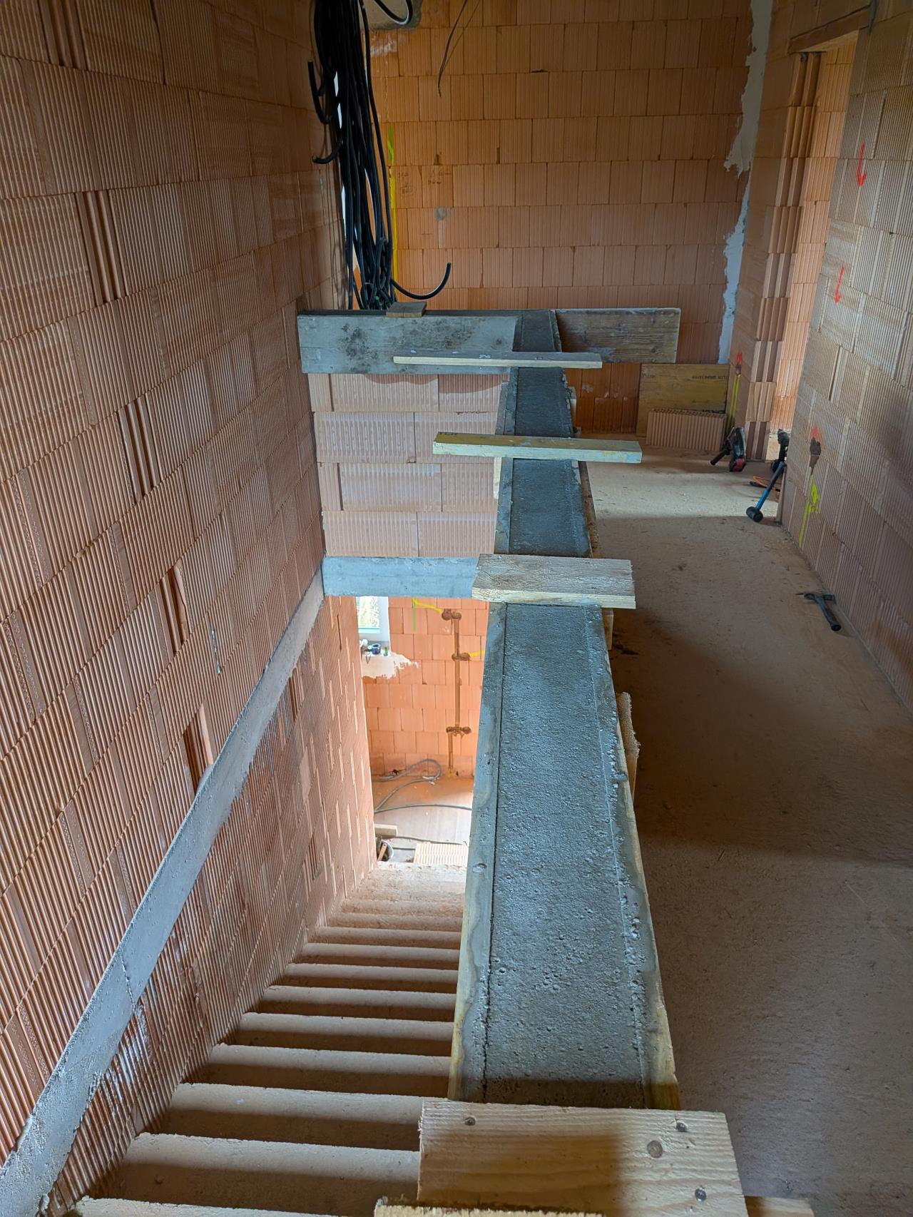 ![]() Vater und ich haben gestern endlich den Ringanker für die Absturzsicherung geschalt und betoniert 12er Eisen ist links in die Wand geklebt und die ganzen Eisenreste der Baustelle haben wir zu einem Bewehrungskorb geflochten, BM meinte zwar das hält auch nur mit den Ziegeln, aber mit war der Ringanker sympathischer und das bissl Beton spür ich im Budget auch nicht |