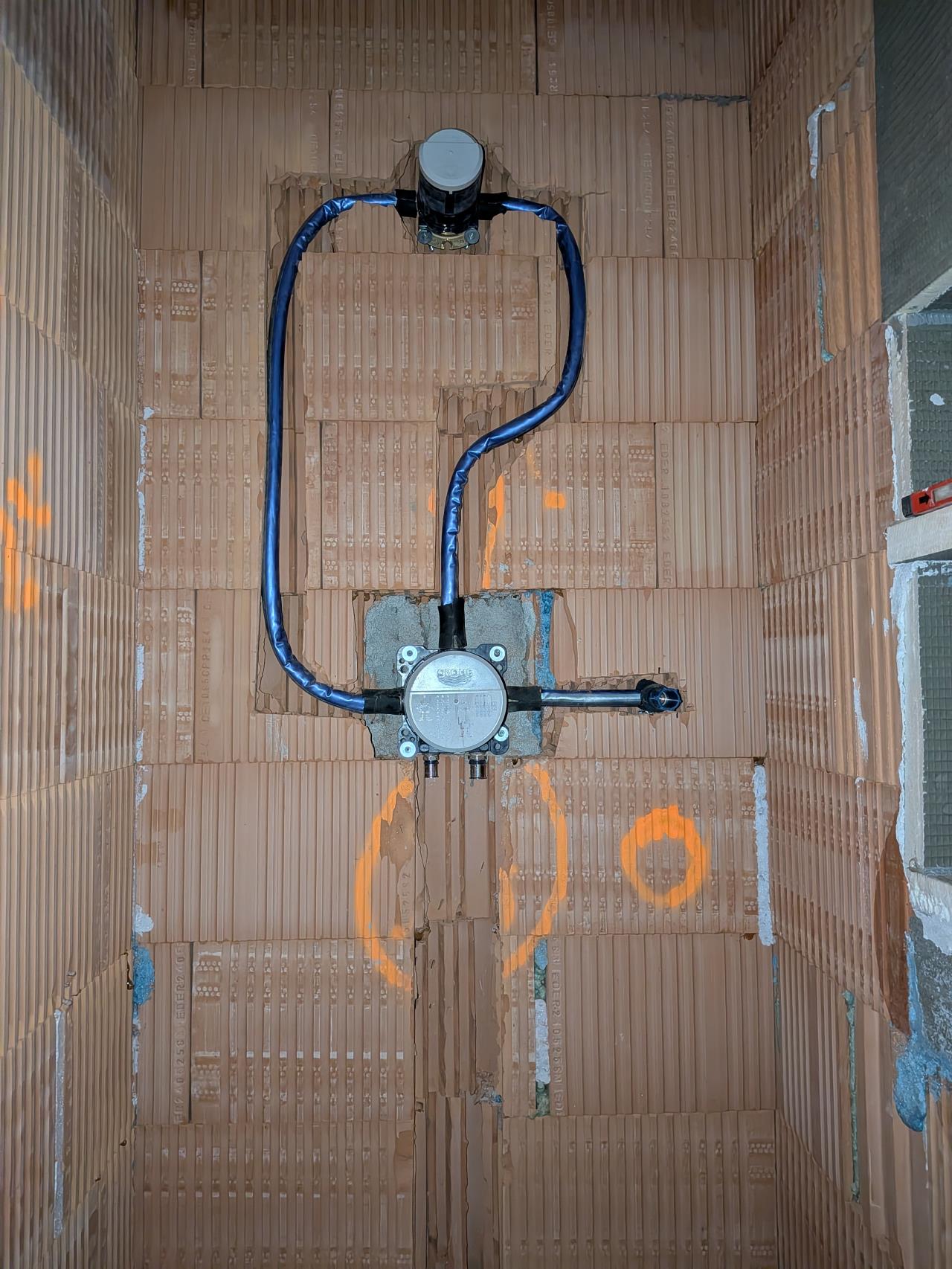 ![]() Heute endlich mit den Duschen und Wanneneinlauf fertig geworden, Zulauf mach ich 1 Tag vorm Innenputz, damit nix im Weg ist Bin noch unschlüssig ob ich die Waschbecken Dosen erst mit den Bädern machen soll, damit sie schön symmetrisch bzw mittig sind, nur beim Gäste WC haben wir schon ein Waschbecken an dem ich mich orientieren kann Ach ja ein Presswerkzeug ist suuuuper nie wieder Schweißspiegel oder Handpressen 😂 |