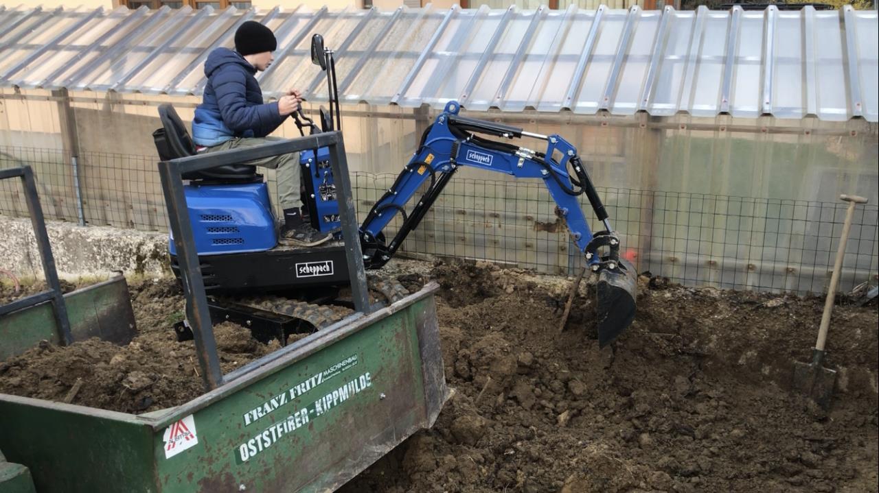 In Lehmboden kein Problem. Bei steinigen Boden fehlt einfach das Gewicht und die Kraft. Als Gemeinschaftsbagger fix zu klein. Mein Kleiner belädt die Heckschaufel von meinem Traktor mit 700 Kg in gut 5 Minuten. Dabei ist der Bagger mit einem Verbrauch von 2 Liter Benzin pro Stunde sehr sparsam. Und das Beste.... ich brauch auf keinen warten, der sich Zeit zum Baggern nimmt. Ich kann am Wochenende tun und immer wenn ich Zeit hab. |