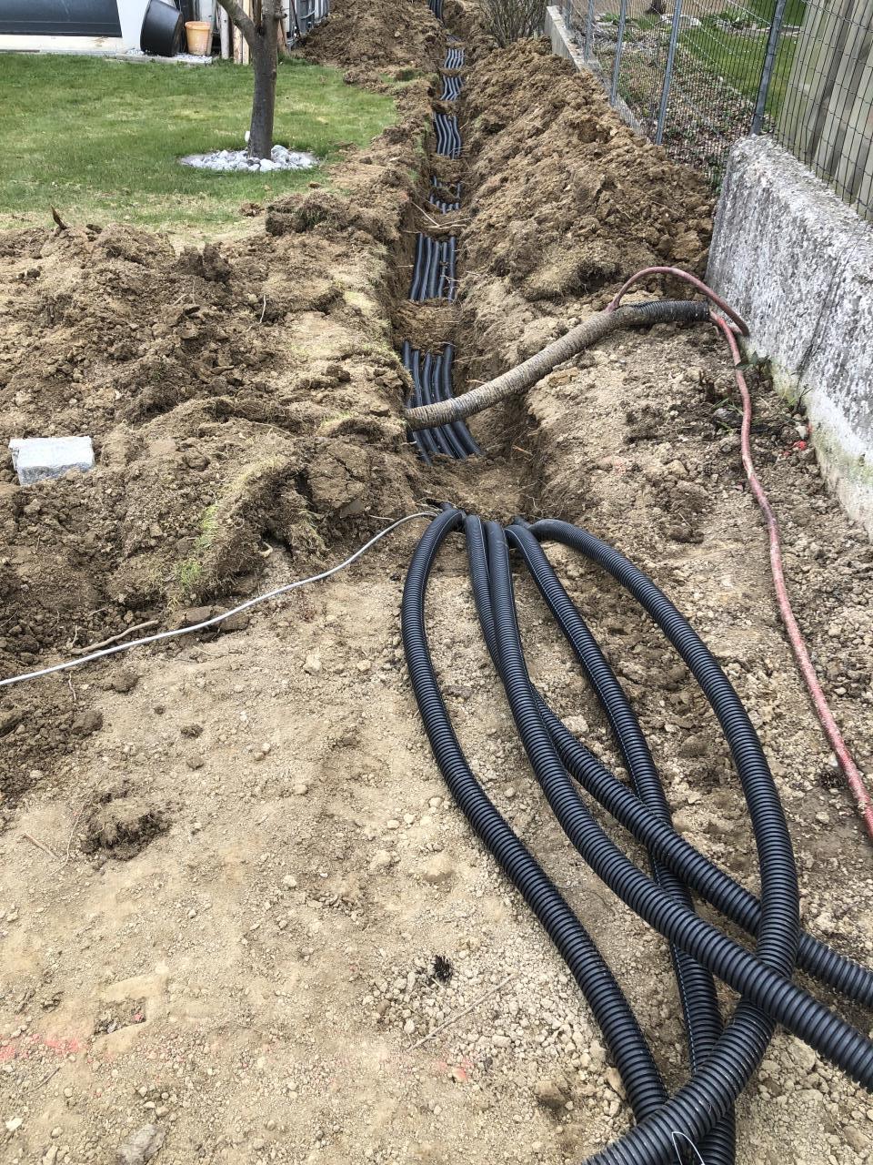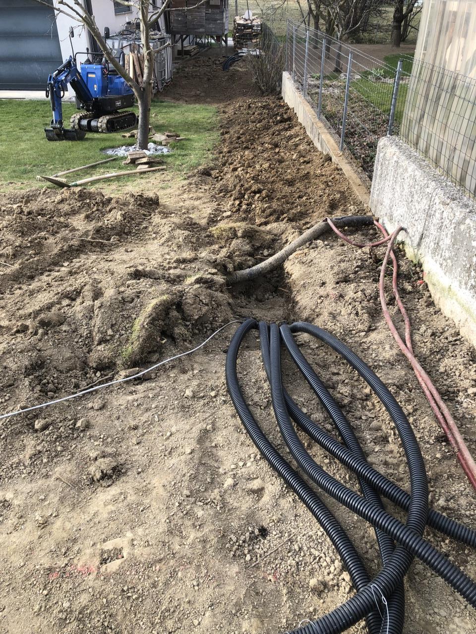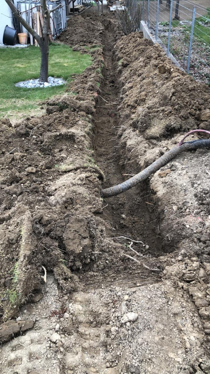 Heute haben wir die Leerverrohrung für Technik und Batterieraum verlegt. ![]() mein 10 jähriger hat eine halbwegs gerade Künette gezogen. ![]() Edelstahl Erdung gleich mit verlegt. ![]() 5x 50mm Leerschlauch zwischen Haus und Technik/Batterieraum ![]() Die Zuleitung der Pv Generatoren... ![]() Ein bisschen Erde drüber und Schluss für heute. |