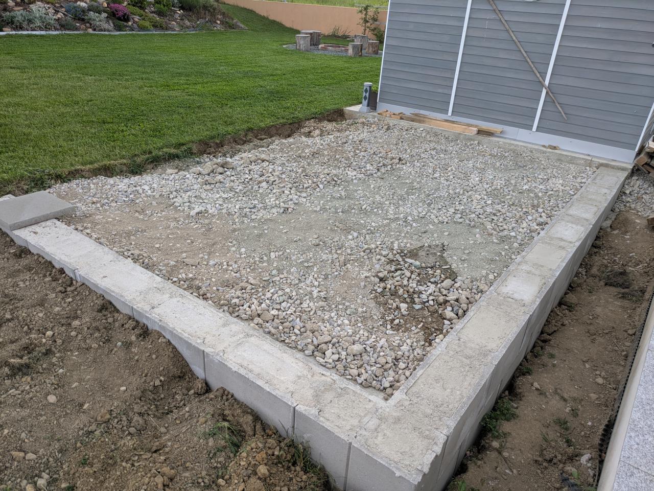 Gestern habe ich die Fläche für den Aufstellpool gefüllt. Jetzt gehort das noch verdichtet und Kies drauf.