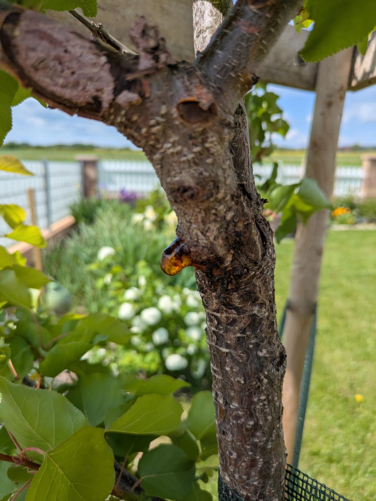 Die "Wunde" ist Gummifluss und eine Symptom für den Krankheitsbefall.