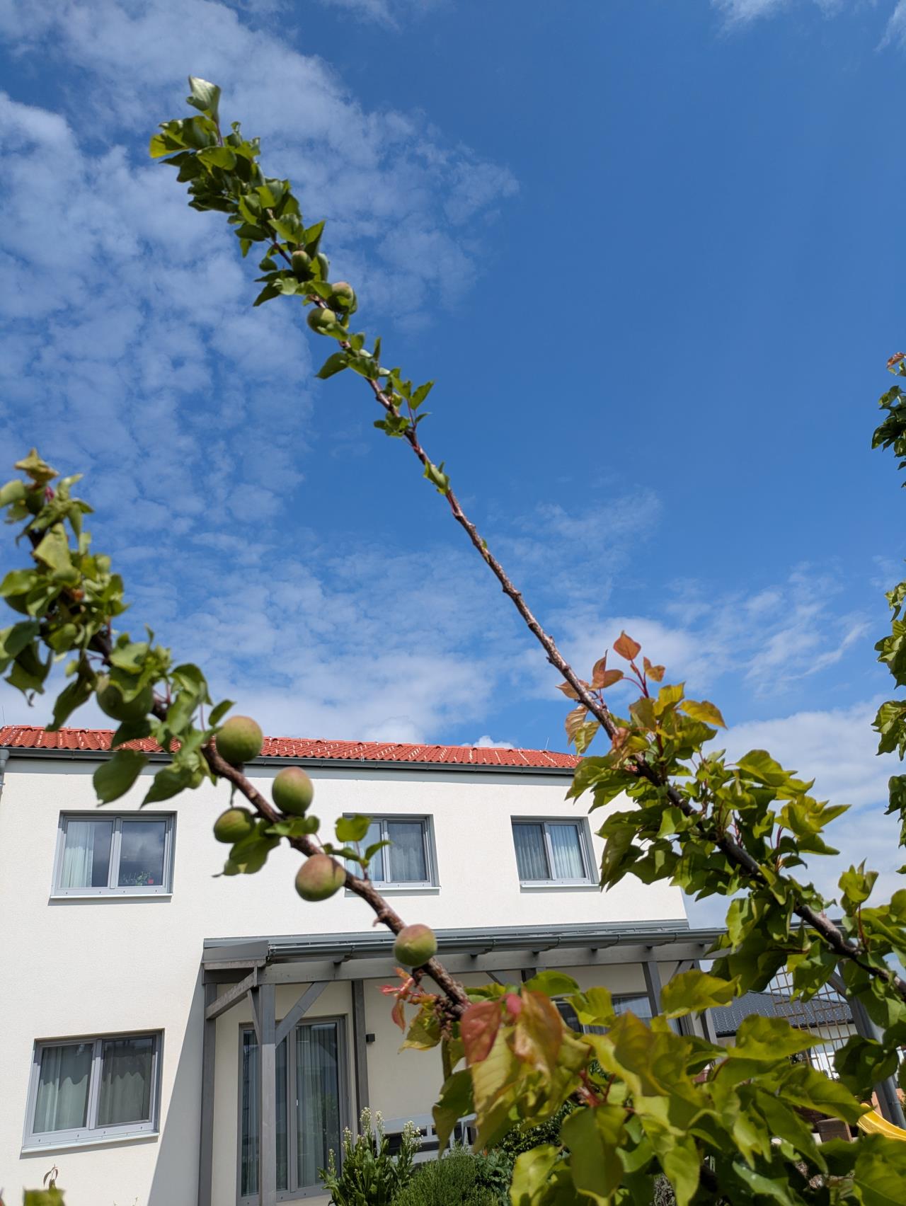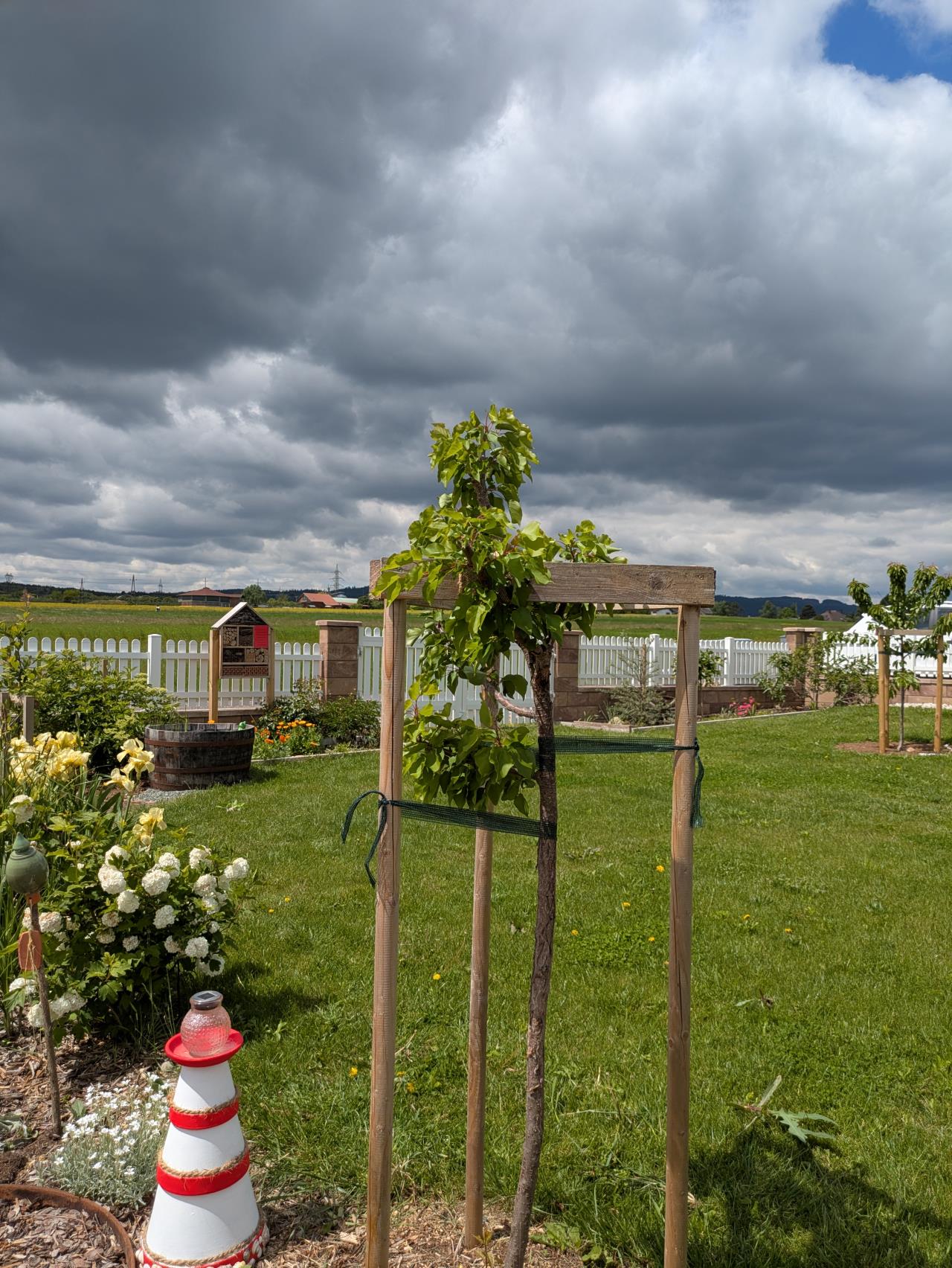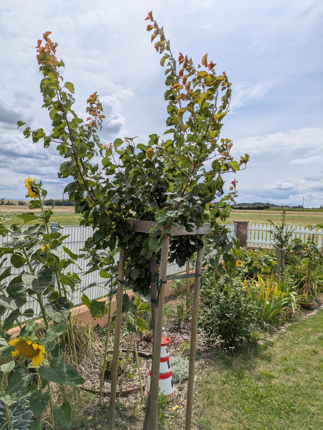 Als Ergänzung: wir haben das Bäumchen vor 3 Jahren gepflanzt. Leider wurde es im ersten Jahr von einem Rehbock arg in Mitleindenschaft gezogen (die Wunden haben wir versorgt), hat sich aber wider erwarten trotzdem prächtig entwickelt und hat auch jetzt sehr viele neue Austriebe.