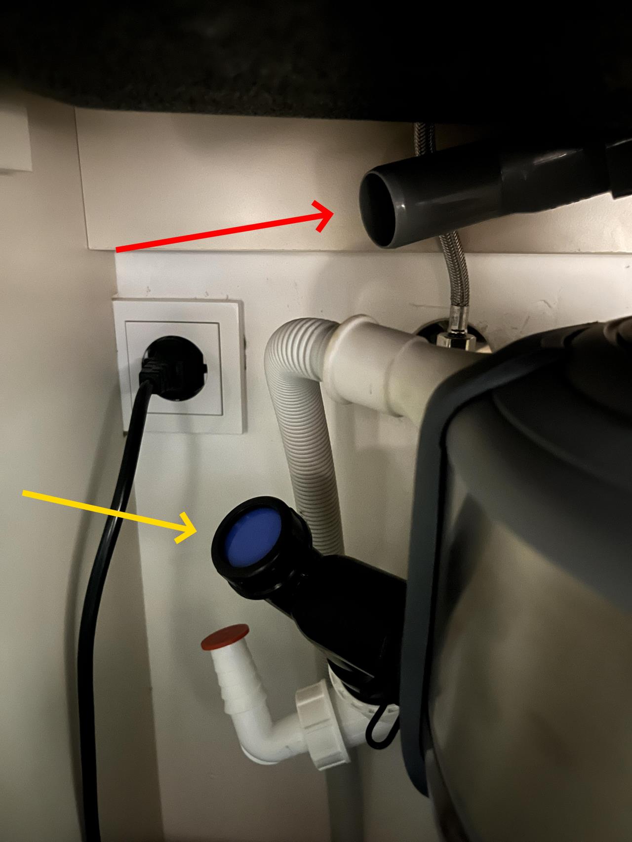 Ein Siphon ist unten dran, den sieht man nur am Foto nicht. Ablaufgarnitur mit Überlauf war auch beim Waschbecken dabei. Kann ich aber nicht verwenden, da ich eine Abflusshäcksler angebaut habe. Auch vom Platz her ist es schwierig. Ich bin quasi gezwungen den schwarzen Anschluss zu verwenden. |