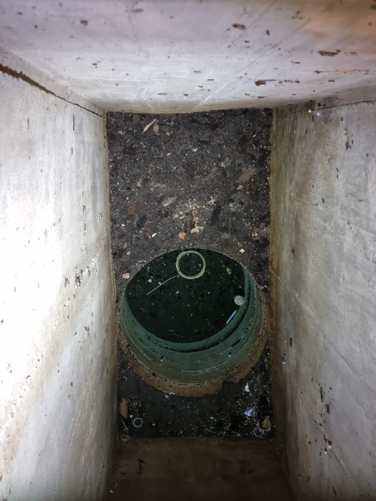 Der Schacht befindet sich im Keller hat Schachtmaße von ca. 0,60mx1,30m und ist bis zum Boden der Künette (wo das Wasserohr beginnt) ca. 5m tief. Wie auf den Fotos ersichtlich steht das Grundwasser derzeit etwas unterhalb des Künetten-Oberrandes.