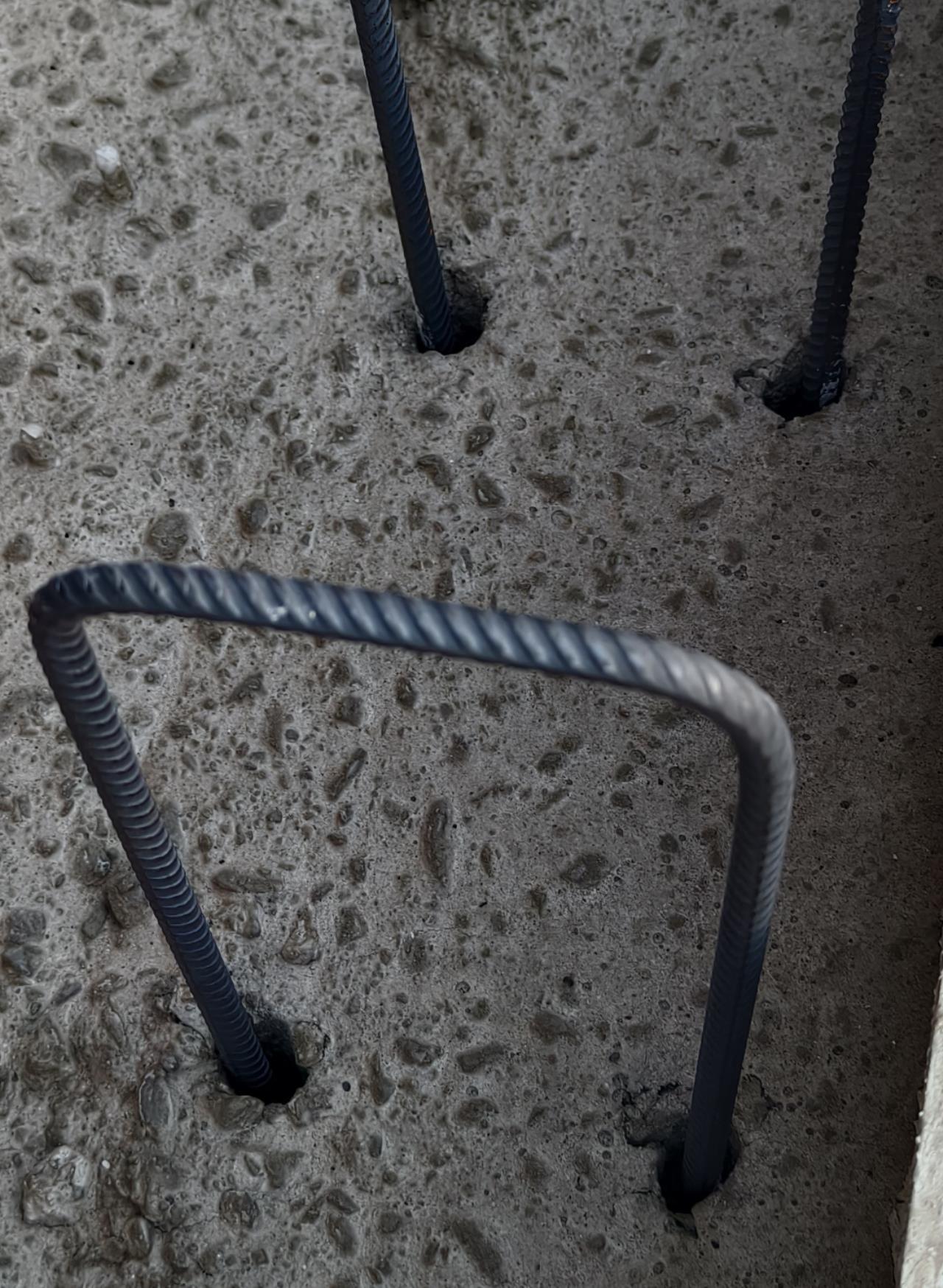 Ich war leider nicht dabei. Nehme an, dass zuerst der Beton gegossen wurde und dann wurden die Eisen reingesteckt.