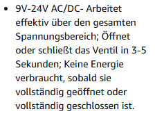 Ja, ist sinnvoll und notwendig, weil die Bewässerung des gesamten Gartens (Gemüse, Sträucher, Staudenbeete, Rasen, Töpfe) über die Zisterne läuft. Manuelle Nachspeisung kenne ich zu genüge von Ausfall-Zeiten, das gebe ich mir nicht. Zum Öffnen bzw. geöffnet Bleiben werden 24V DC ausgegeben. Ich habe gestern mal diesen "normally closed" Motor-Kugelhahn bestellt: https://www.amazon.de/dp/B07CWN219B?ref=ppx_yo2ov_dt_b_fed_asin_title&th=1/?tag=showlowestprice-21 |
