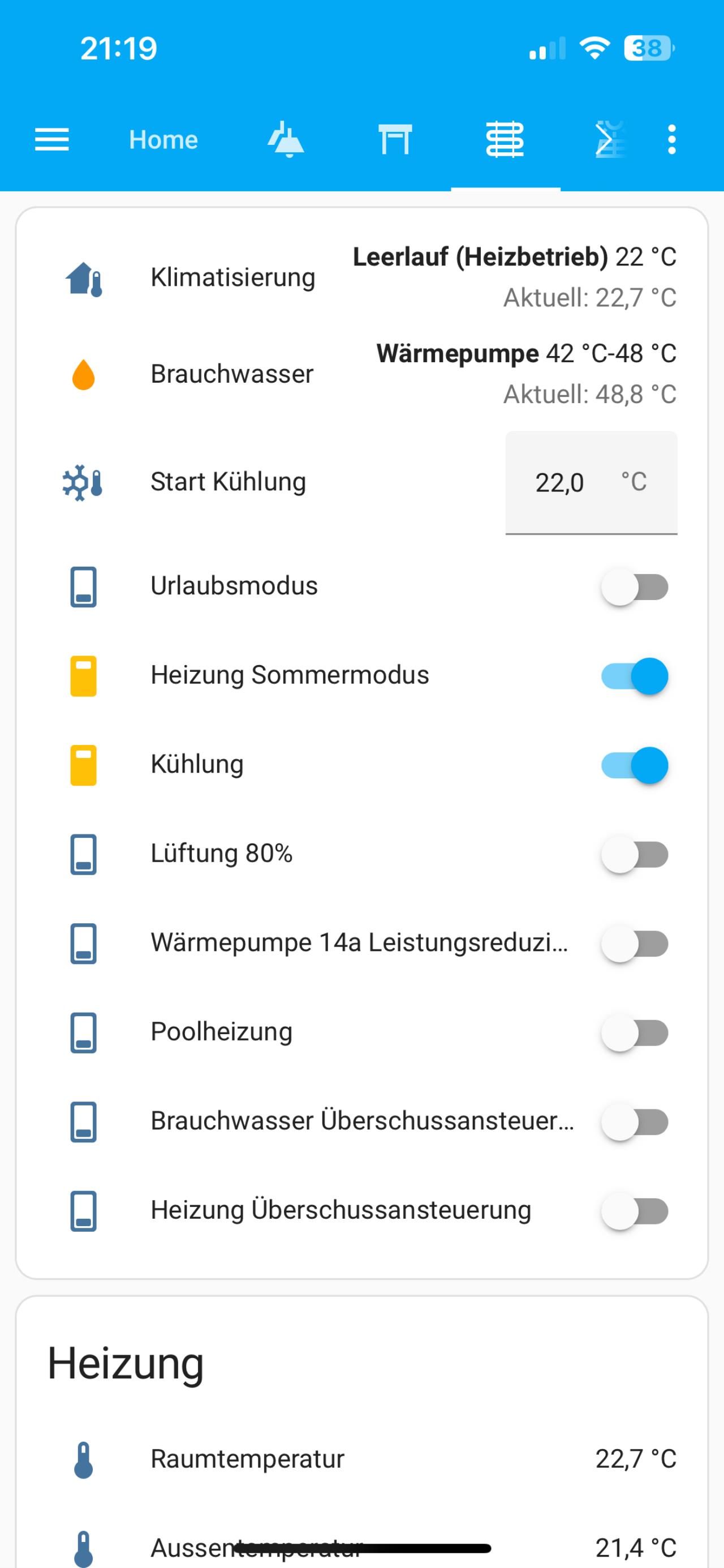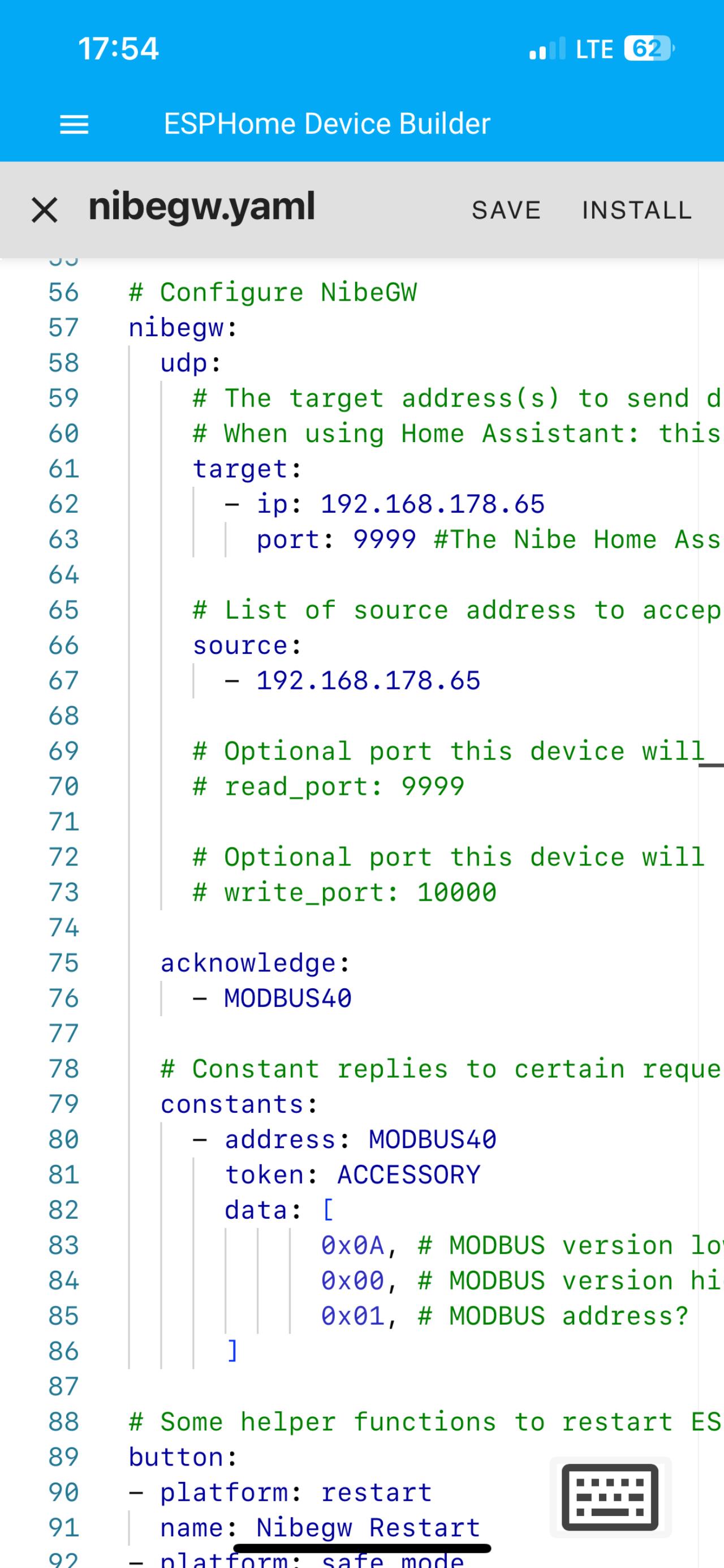 Meine NIBE f1255 jetzt mit Homeassistant per Modbus verbunden (Platine von RS485 auf WLan hat nur 25€ gekostet) Es gibt nichts geileres, was man hier alles auslesen und Steuern kann, der Wahnsinn... LAN Verbindung gekappt und myUplink Müll gelöscht. |