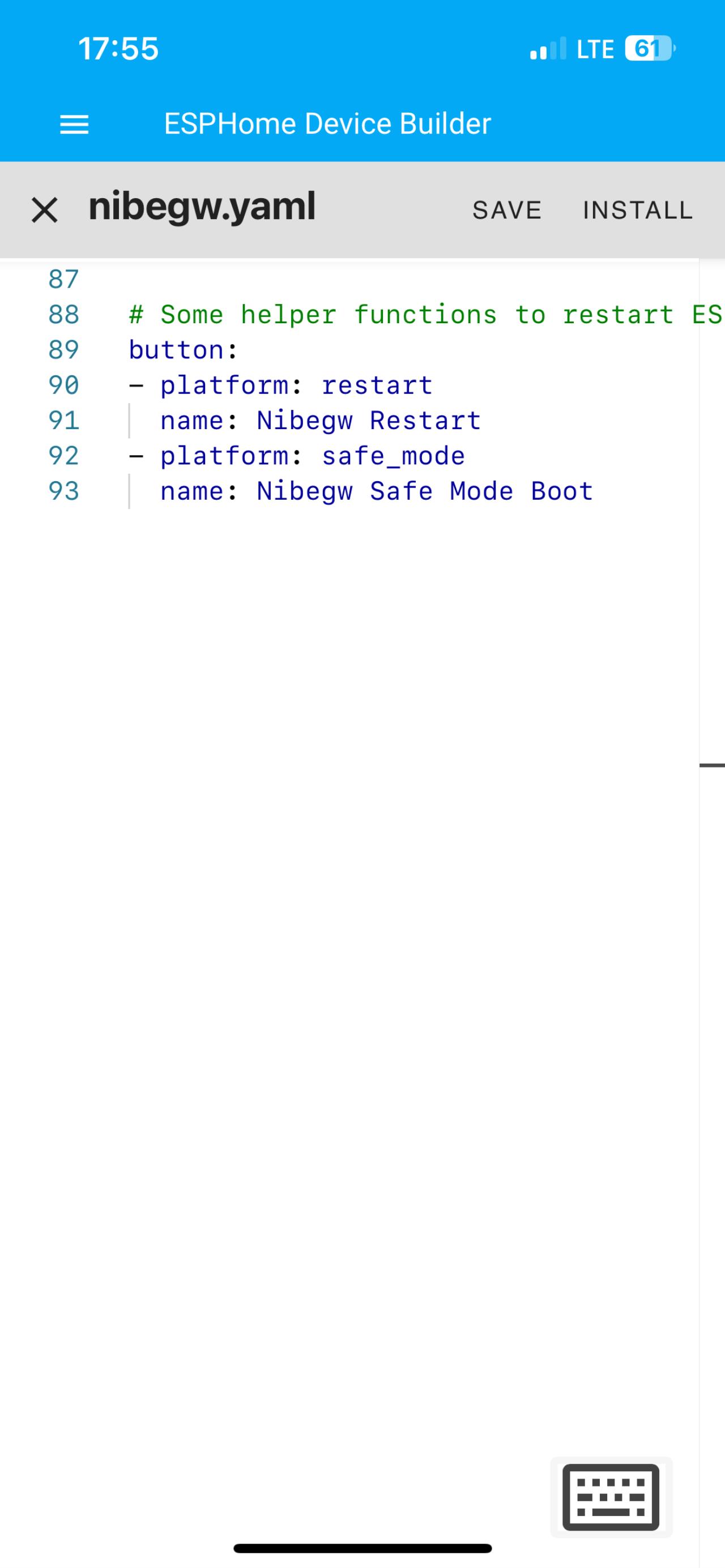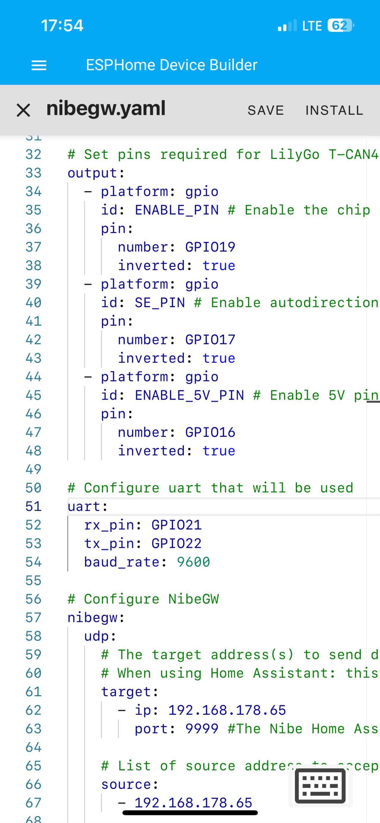 Hallo Vielen Dank! Ich habe es gestern dann noch in relativ kurzer Zeit zusammengebracht. Ich bin ein blutiger Anfänger (Home Assisteant) und mir war nicht bewusst, das das alle über den ESPHome Device Builder läuft (oder das es das plugin überhaupt gibt 😁). Ich dachte ich muss den Lilygo Microcontroller über Arduino IDE programmieren und laden. 😝 Dein Screenhot hat mich dann auf die reichtige Spur gebracht ... Jetzt läuft HA probeweise in einer VirtualBox auf meinem Laptop, aber ich glaube die Spielerei hat erst begonnen ... Kann ich jeden empfehlen, der Lilygo wurde innerhalb von 5 Tagen aus China geliefert und die Installation in meiner F1155-EM war auch sehr einfach mit den Fotos. In kürze wird die NIbe vom Internet gekappt, da es mir zu riskant (z.B. Hackerangriff auf die Nibe Cloud im Winter, mit entsprechend vielen möglichen Auswirkungen) wurde. |