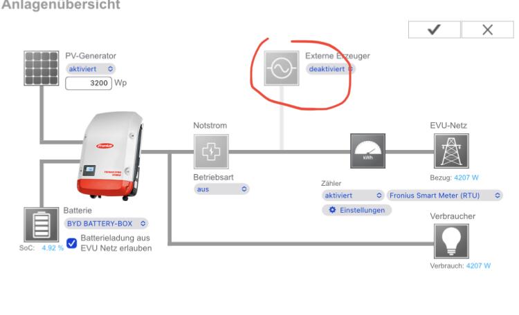 Wir sind in Tirol möchte nur alle möglichkeiten erfahren, was zur Zeit Stand der Technik ist. Ich verstehe nur nicht das Fronius das nicht hat ? keine Beschreibung dazu, aber in der Doko kann man einen Generator ein und auschalten? |