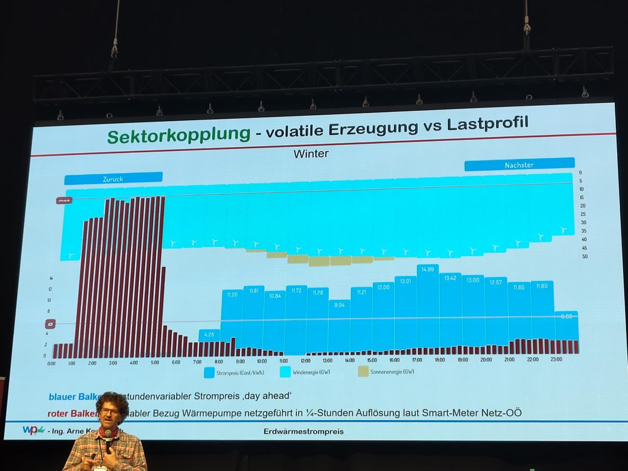 Leider weiß die WP WP [Wärmepumpe] nicht, was auf dem Angebot steht, denn im Datenblatt (Installateurhandbuch) ist folgendes Leistungsdiagramm drin: Und da sieht man, dass es eher eine 2 - 11 kW (!) Maschine ist, also ziemlich sicher zu groß für dein Haus. (Auch wenn sie das Maximum aufgrund der unterdimensionierten Solepumpe eher schwer erreicht, aber das ist eine andere Geschichte dieser WP WP [Wärmepumpe]. Und die 12h Zwangstakte natürlich.) Man lässt dann die Heizung laufen, wenn der Strom am Billigsten ist. Bei einem variablen Stromtarif, der sich stündlich ändert, fährt dann die WP WP [Wärmepumpe] auf Minimum, wenn es teuer ist, und gibt Gas (haha), wenn es billig ist, was im Winter tatsächlich oft in der Nacht ist. Dank BKA BKA [Betonkernaktivierung] ist es ja egal, wann die WP WP [Wärmepumpe] die Wärme ins Haus schiebt - einer der großen Vorteile der BKA BKA [Betonkernaktivierung]. 👍 (Nur zur Sicherheit: Die BKA BKA [Betonkernaktivierung] wird eh vollflächig, damit man auch mit ihr heizen kann, gell? 😉) Übrigens: @dyarne ist nicht (nur) ein Insider, sondern wahrlich ein Pionier. Denn er hat den RGK RGK [Ringgrabenkollektor] erst salonfähig und serienreif gemacht, und er war der erste wohl weltweit, in dessen Keller die Strompreisautomatik der Nibe mit variablen Tarifen getestet wurde, schließlich wurde die dort auch quasi entwickelt. 💪 Viel kompetentere (und auch beschäftigtere) Menschen zu diesen Themen wirst schwer finden können... 😉 (hier wieder live in action auf der We.Build Energiesparmesse in Wels, genau zu diesem Thema 😀)
