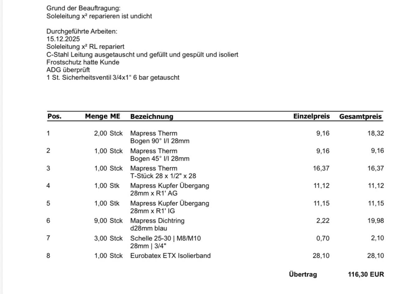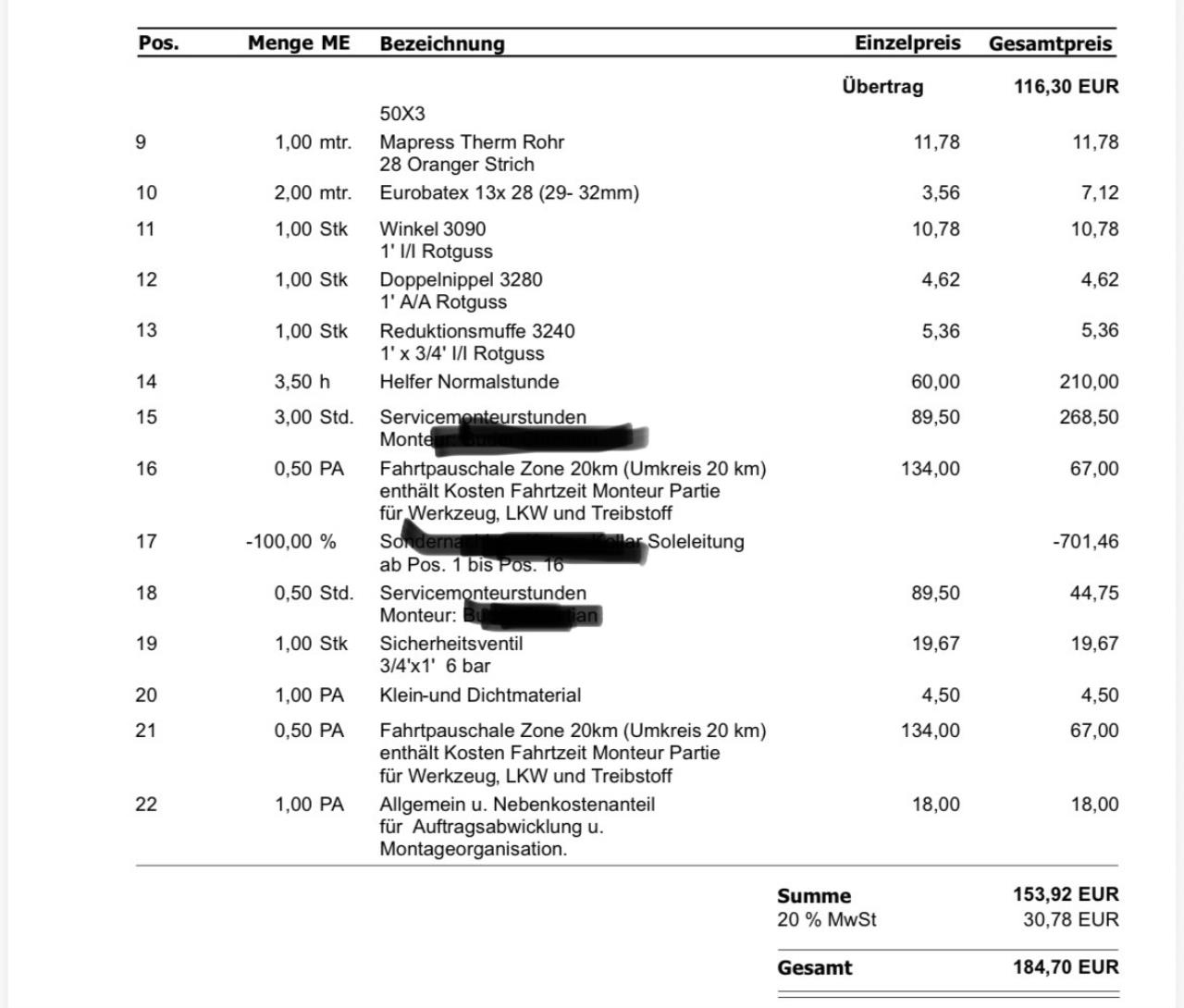 Ich möchte euch den Ausgang bzw. die Rechnung nicht vorenthalten und meinen Installateurbetrieb hier sehr lobend erwähnen, da sich die Kosten aufgrund Kulanz sehr im Rahmen hielten. So sieht eine langjährige Partnerschaft und eine gute Kundenbeziehung aus. Vielen Dan nach Lilienfeld zum K....r!👌 |