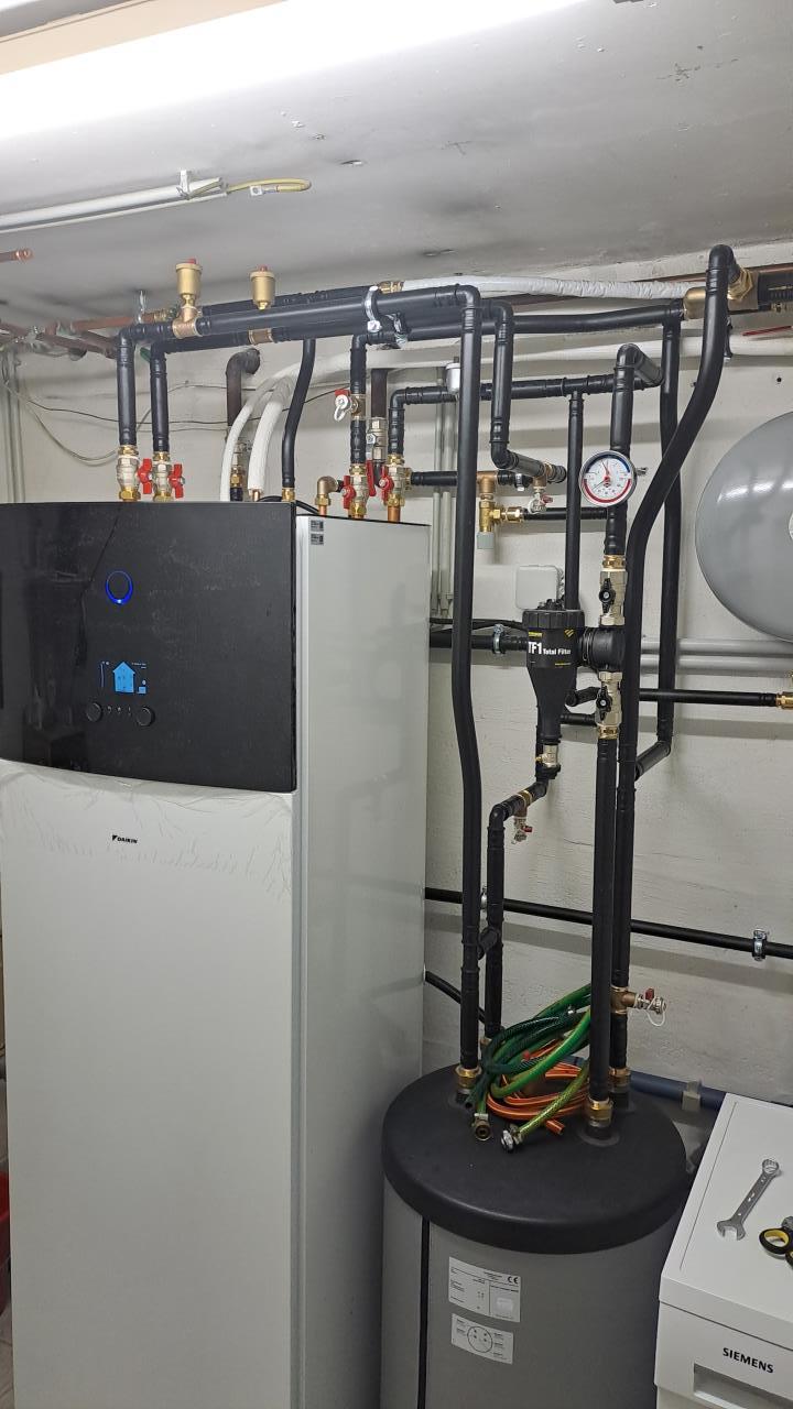 Sie müssen heute eh nochmals kommen... meine Idee wäre zwischen Puffer und der Verbindung noch zwei Ventile machen zu lassen. Dann kann man den Puffer abdrehen bzw. auf für den Daikin Techniker. Der kommt leider erst irgendwann.