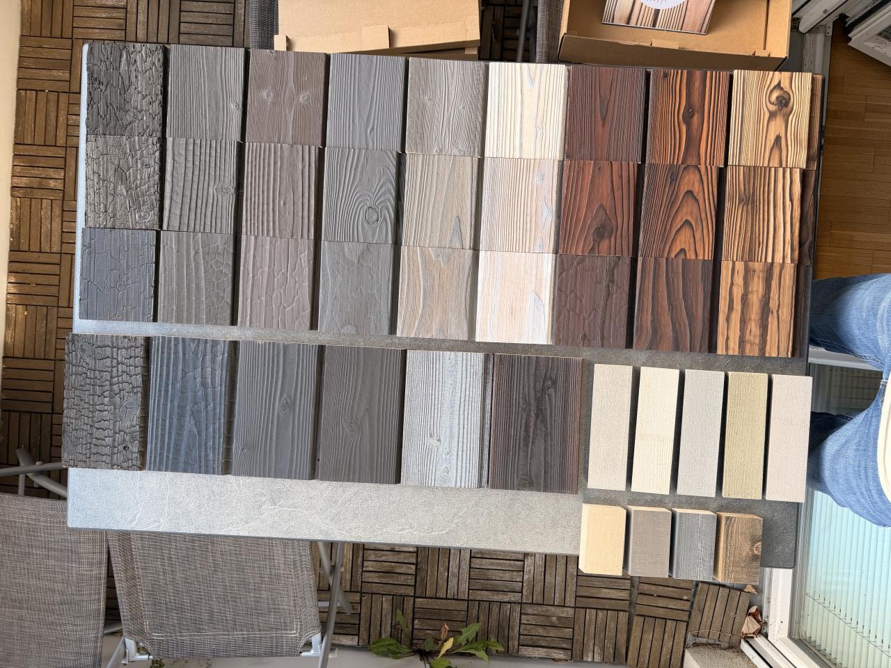Ich hoffe, dass ich mit diesen Infos weiterhelfen kann, falls jemand diese Art von Fassaden in Betracht zieht. Grundsätzlich würde ich auf jeden Fall schauen, dass ich Muster habe, um sie in echt zu sehen, anzugreifen, riechen, spüren können, um ein Gefühl dafür zu bekommen.