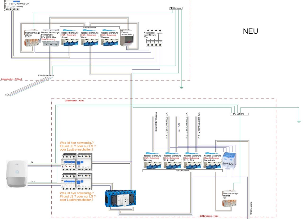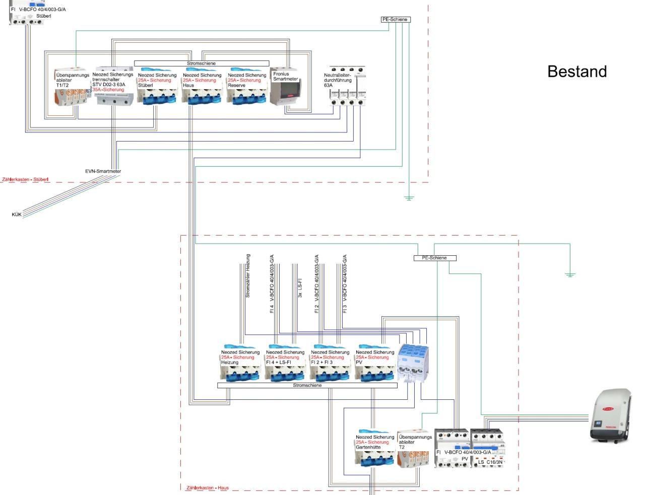 Ich habe die Zuleitung ins Haus noch auf den Nezed 25A Sicherungen gelassen... wenn das wegen selektiv ein Problem wäre, könnt ich den ja direkt nach den Sicherungstrennschalter 35A hängen, dann sollte das gelöst sein oder soll das schön ektra nocheinmal abgesichert sein..