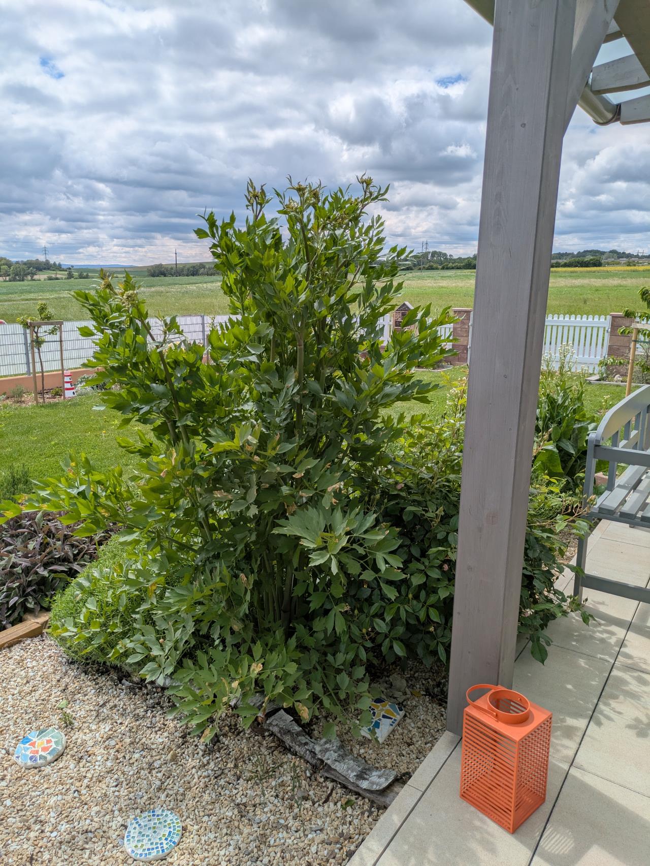 Der Liebstöckl gedeiht prächtig. Mittlerweile ist er schon größer als meine Frau. Generell ist unser Kräutergarten eine Freude: Und unser ehemaliger Schandfleck wird auch schön langsam: Dort trieb bislang die Ackerwinde ihr Unwesen. Heuer zupf ich einfach 1 mal am Tag alle neuen Triebe ab, an manchen Stellen kommt sie deswegen gar nicht mehr bzw deutlich reduzierter. Die Sonnenblumen haben sich übrigens selbst angepflanzt 😂 |